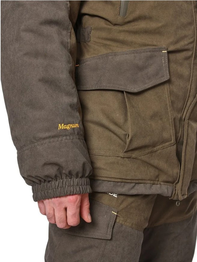 Костюм Pride Магнум Зима разработан на основе знаменитого военного костюма «Горка». В этом костюме гармонично сочетается проверенный временем анатомический крой и современные материалы. В результате сурового коктейля из апробированных и инновационных технологий мы и получаем костюм «Магнум Зима». Верх костюма изготовлен из современной бесшумной мембранной ткани «Исландия» с показателями мембраны 10000/10000. Утеплитель «Русский Север» сохраняет комфортную температуру даже при длительной неподвижности. Костюм «Магнум Зима» рекомендуется для охотников, рыбаков, туристов и силовых структур.
