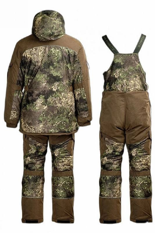 Костюм состоит из куртки и полукомбинезона. Ткань Alova/FinlYandiya Мембрана F-PROTEX ICE 5000\5000 Водоотталкивающая пропитка WR (water repellent) Температурный режим Hard - 35°C Утеплитель PRO-WARM Save System (Слайтекс) Технология сохранения тепла WARMSAVE Анатомический крой Влагозащитные молнии 14 функциональных карманов Магнитная фурнитура Регулировка капюшона и низа куртки по объёму Противосугробные манжеты Фирменная сумка Fantom Force