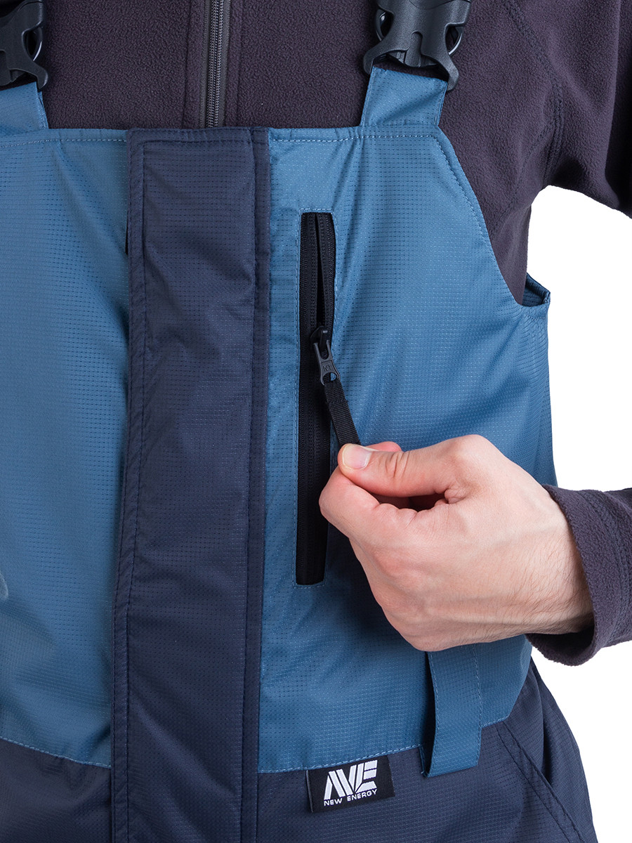 Костюм изготовлен из прочной ткани Таслан Rip Stop с пропитками WR PU. Состоит из куртки и полукомбинезона.