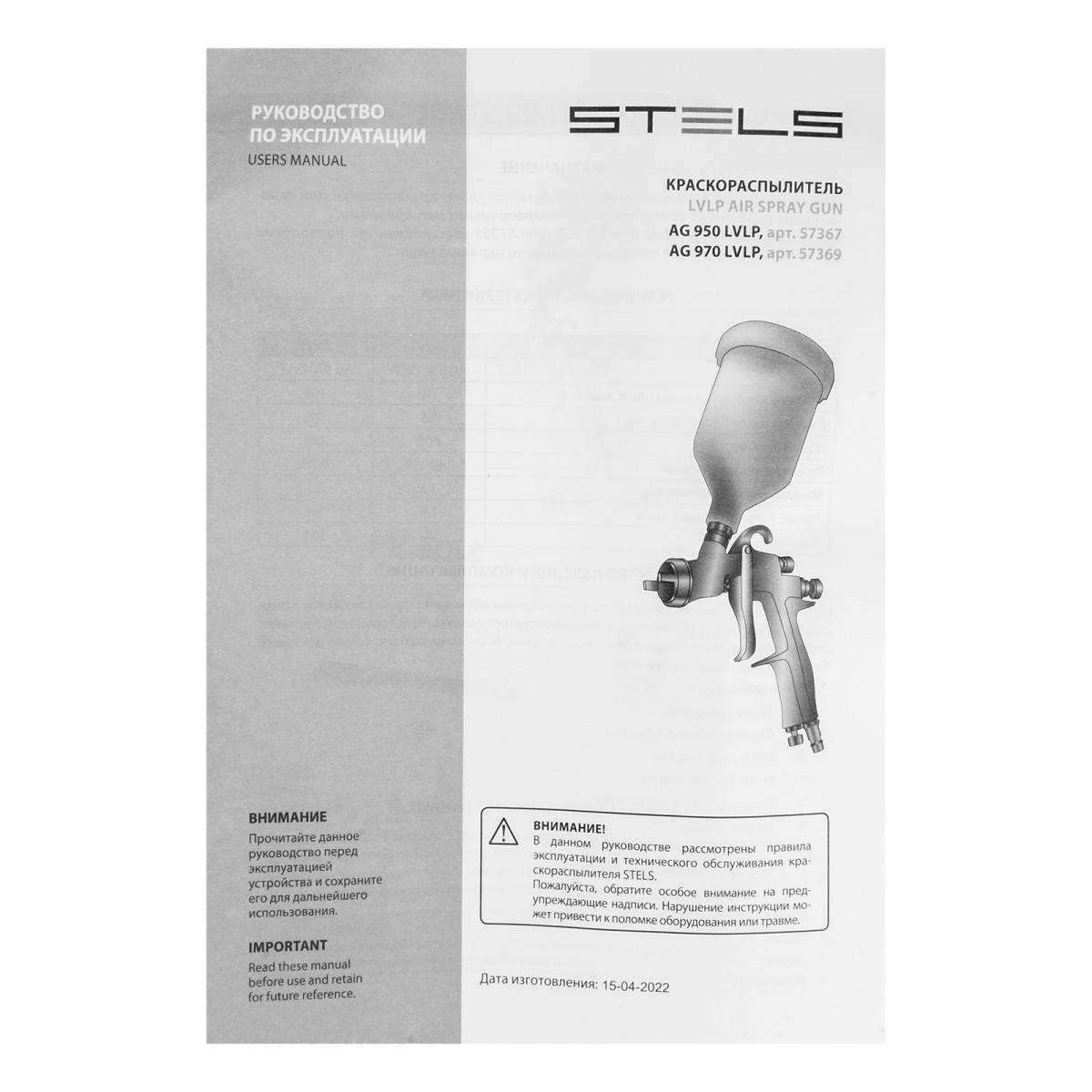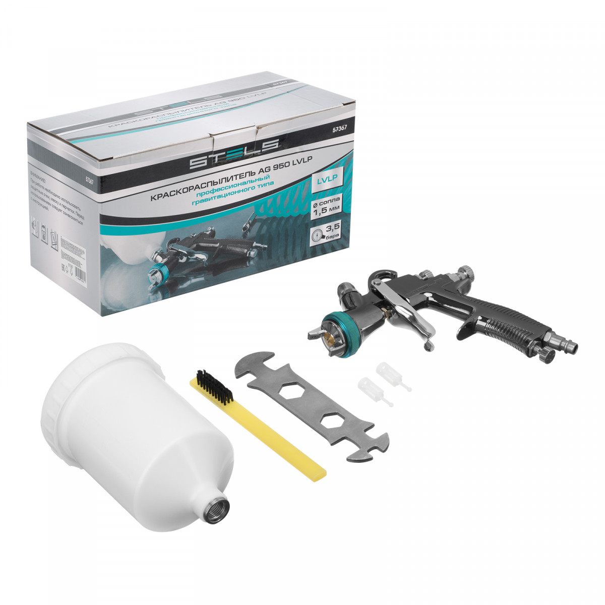 Краскораспылитель AG 950 LVLP, профессиональный, гравитационного типа, сопло 1.5 мм Stels