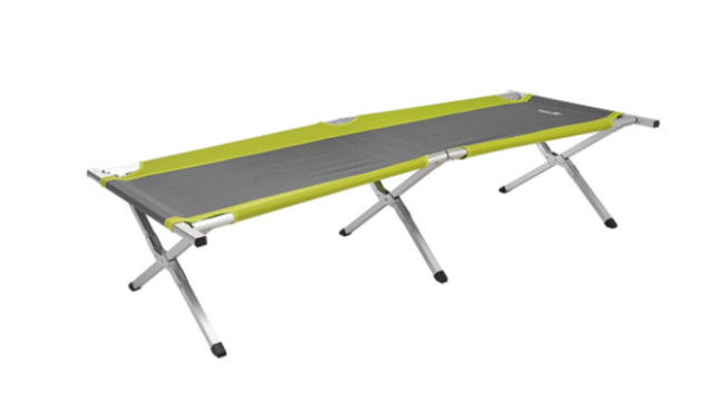 Кровать походная с устойчивой конструкцией, усиленным каркасом из алюминиевого профиля и двойным слоем ткани станет незамененимым предметом для отдыха на природе. Кровать может пригодиться в качестве дополнительного спального места в помещении. В комплекте удобный чехол для транспортировки. • Размер: 190х66х45 см. • Каркас: алюминиевый профиль (35х25 мм и 25х25 мм), матовая обработка. • Ткань: polyester 600D (PVC coating). • Допустимая нагрузка: 120 кг. • Вес: 6,2 кг.