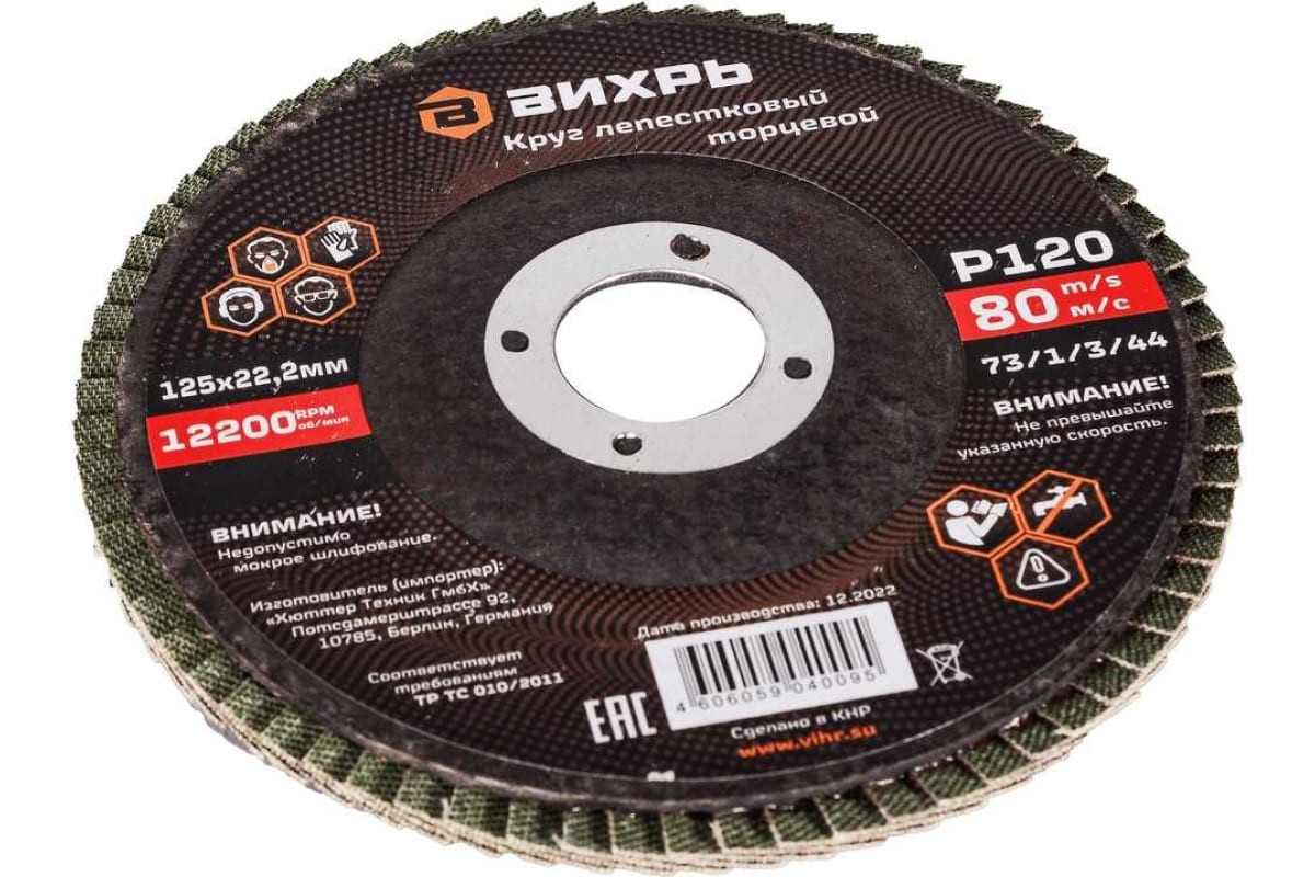 Круг лепестковый торцевой Р120 ВИХРЬ 125х22,2 мм