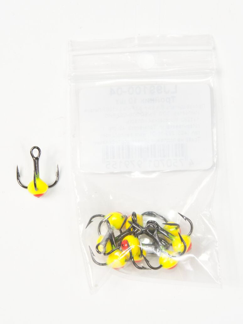 Тройники с пластиковой цветной каплей. Используется для комплектации балансиров и вертикальных блёсен.