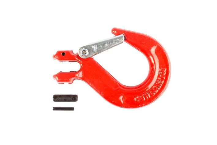 Крюк стальной с вилочным креплением применяется при изготовлении цепных стропов (чалок) и грузозахватных приспособлений, а также при проведении буксирных и такелажных работ в качестве концевого элемента. Характеристики: 4-х кратный запас прочности на разрыв (8 класс прочности), имеет вилочную систему крепления, оснащен пластинчатым замком. Благодаря вилочной системе крепления (сопряжения) может крепиться к стропу без использования соединительных звеньев (при помощи стального запорного пальца, фиксируемого шплинтом). Использование комплектующих 8-го класса прочности производства TOR industries позволяет снизить вес стропа при сохранении нормативных параметров надежности.