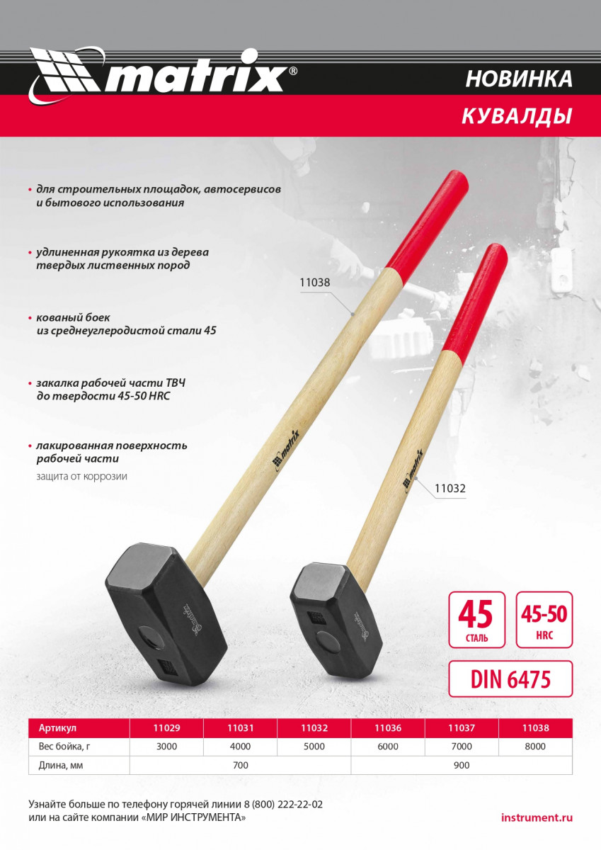 Кувалда Matrix 11032 длиной 700 мм, с кованой головкой весом 5000 г и деревянной рукояткой, — ударный инструмент, позволяющий демонтировать бетонные, каменные и кирпичные конструкции, а также проводить сборочные работы. Удлиненная рукоятка повышает силу наносимых ударов, кованая головка обеспечивает надежность и долговечность инструмента. Кувалда применяется при проведении строительных работ, будет полезна в гараже или на загородном участке.