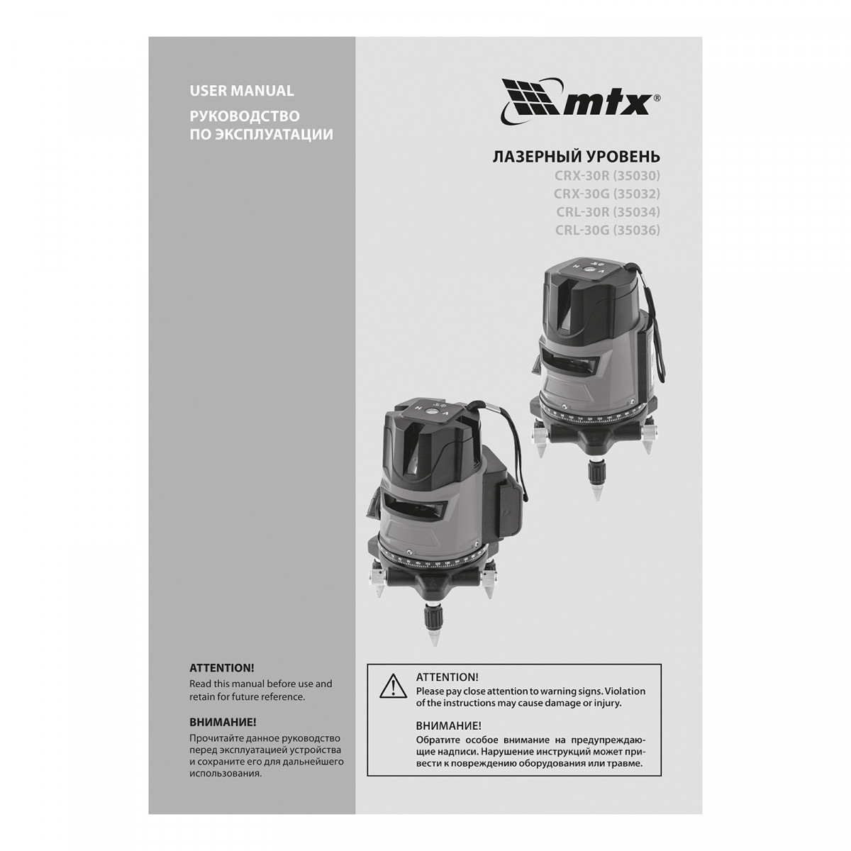 Лазерный уровень CRX-30G, 30 м, зеленый луч, батарейки, резьба 5/8" MTX