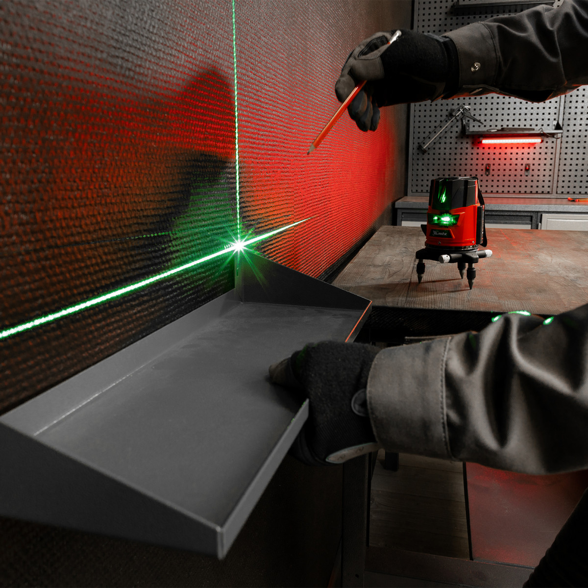 Лазерный уровень MTX CRX-30G 35032 с зеленым лучом, резьбой под штатив 5/8″, в комплекте с батарейками, проецирует на поверхность горизонтальную, вертикальную линии или крест дальностью до 30 м. Используется при проведении бытовых ремонтно-строительных работ в помещениях. Погрешность измерений составляет всего лишь ±1,5 мм 5 м.