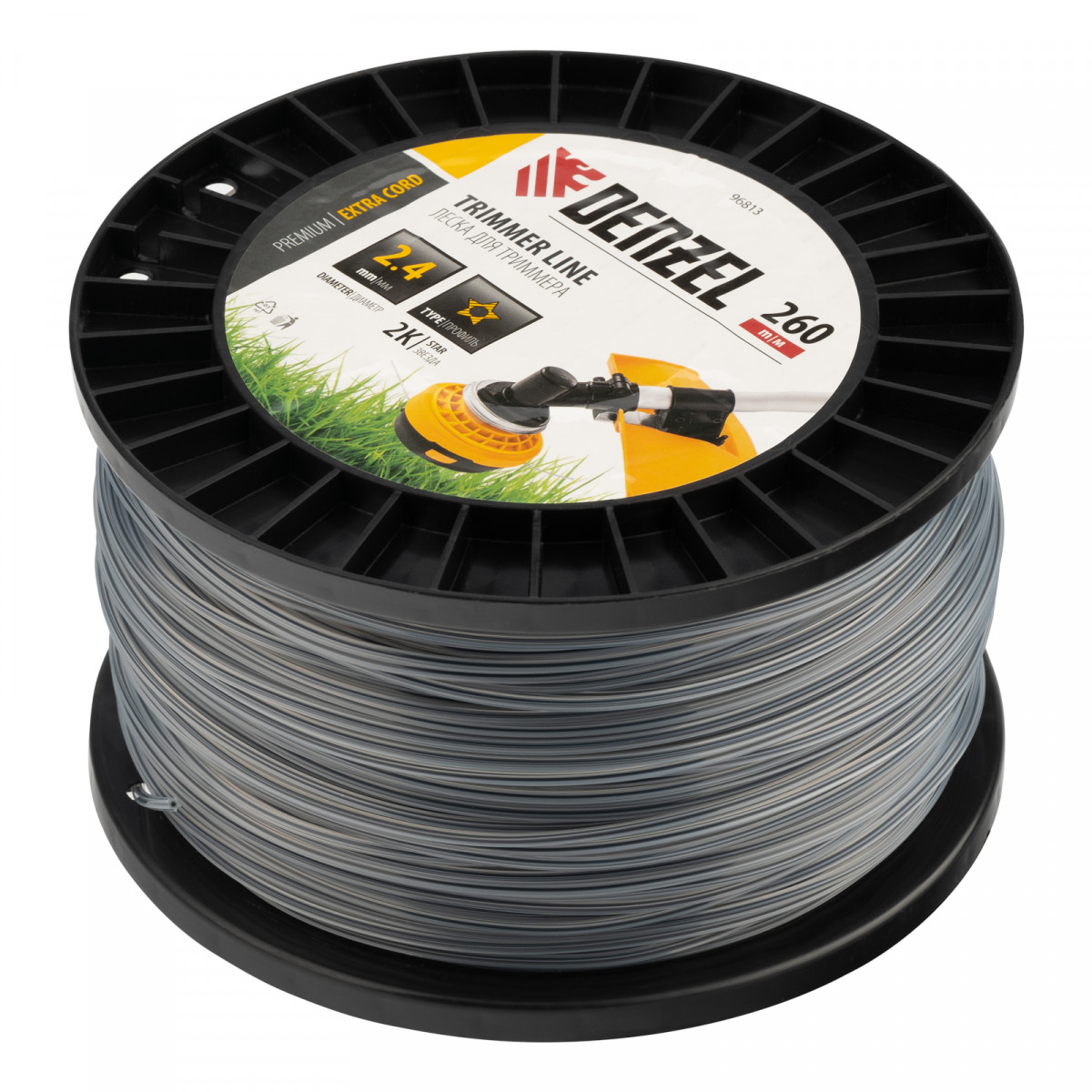 Леска для триммера двухкомпонентная звезда, 2,4мм х 260м, на DIN катушке EXTRA CORD Denzel