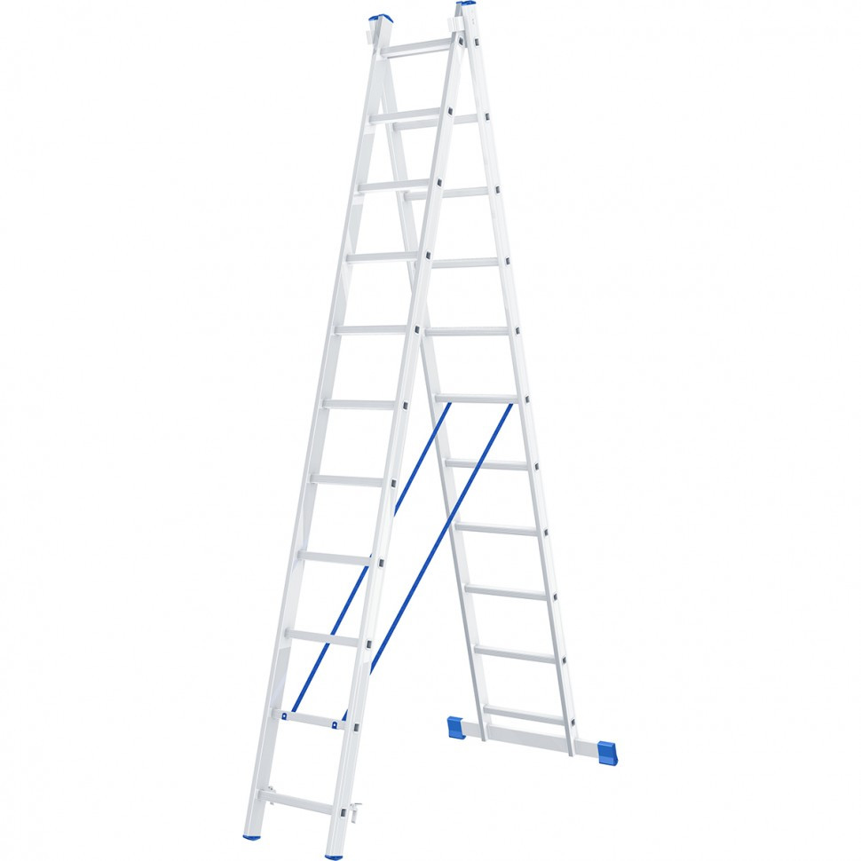 Лестница, 2 х 11 ступеней, алюминиевая, двухсекционная, Сибртех