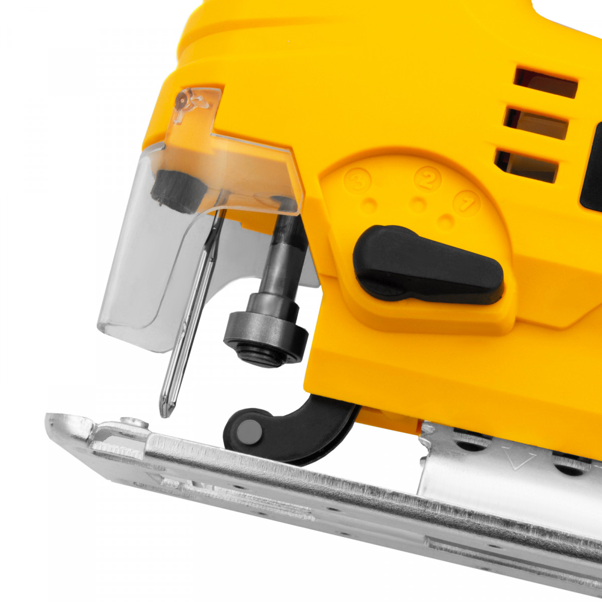 - Одинаковая эффективность при прямой и фигурной резке — усовершенствованный механизм главного движения исключает отклонение пильного полотна в сторону.