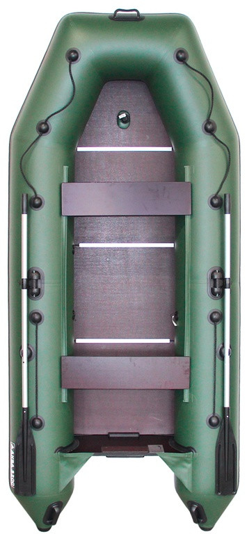 Трехместная моторная лодка с передвижным сидением (ликтрос-ликпаз), слань из 4-х частей, Н-профиль, стрингера, киль, стационарный транец.Надувные моторно-гребные лодки ПВХ «Аква» сделаны из прочного высококачественного ПВХ. Моторно-гребные лодки «Аква» оборудованы надежными клапанами, которые позволяют как быстро сдуть лодку ПВХ, так и являются надежной защитой от нежелательного стравливания воздуха. Моторно-гребные лодки ПВХ «Аква» оснащены уключинами для весел поворотного типа, а так же имеют леер безопасности, удобные ручки для переноса (1 на носу, 2 на корме), надежные фиксаторы для весел, усиленную защиту баллонов под днищем.Из технических особенностей следует выделить, что транец устанавливается в специальный пластиковый транцевый пояс, что повышает надежность конструкции. Жесткая слань, которой оснащена данная модель лодки ПВХ «Аква» моторной серии, изготовлена из высококачественной ламинированной водостойкой фанеры, имеющей антискользящее (шершавое) покрытие, на алюминиевых профилях..