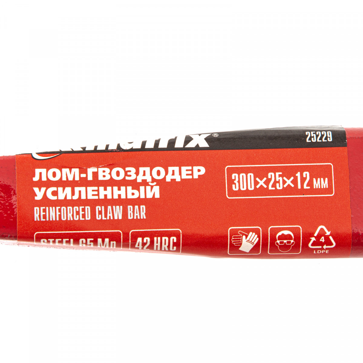 Усиленный лом-гвоздодер Matrix 25229, 300х25х12 мм, предназначен для демонтажа различных конструкций. Им можно извлекать гвозди, разбирать ограждения и деревянную тару, демонтировать старую обшивку стен или крыши. Тело инструмента имеет овальную форму, поэтому выдерживает повышенные нагрузки. Лом-гвоздодер необходим на строительной площадке, пригодится также и в быту.