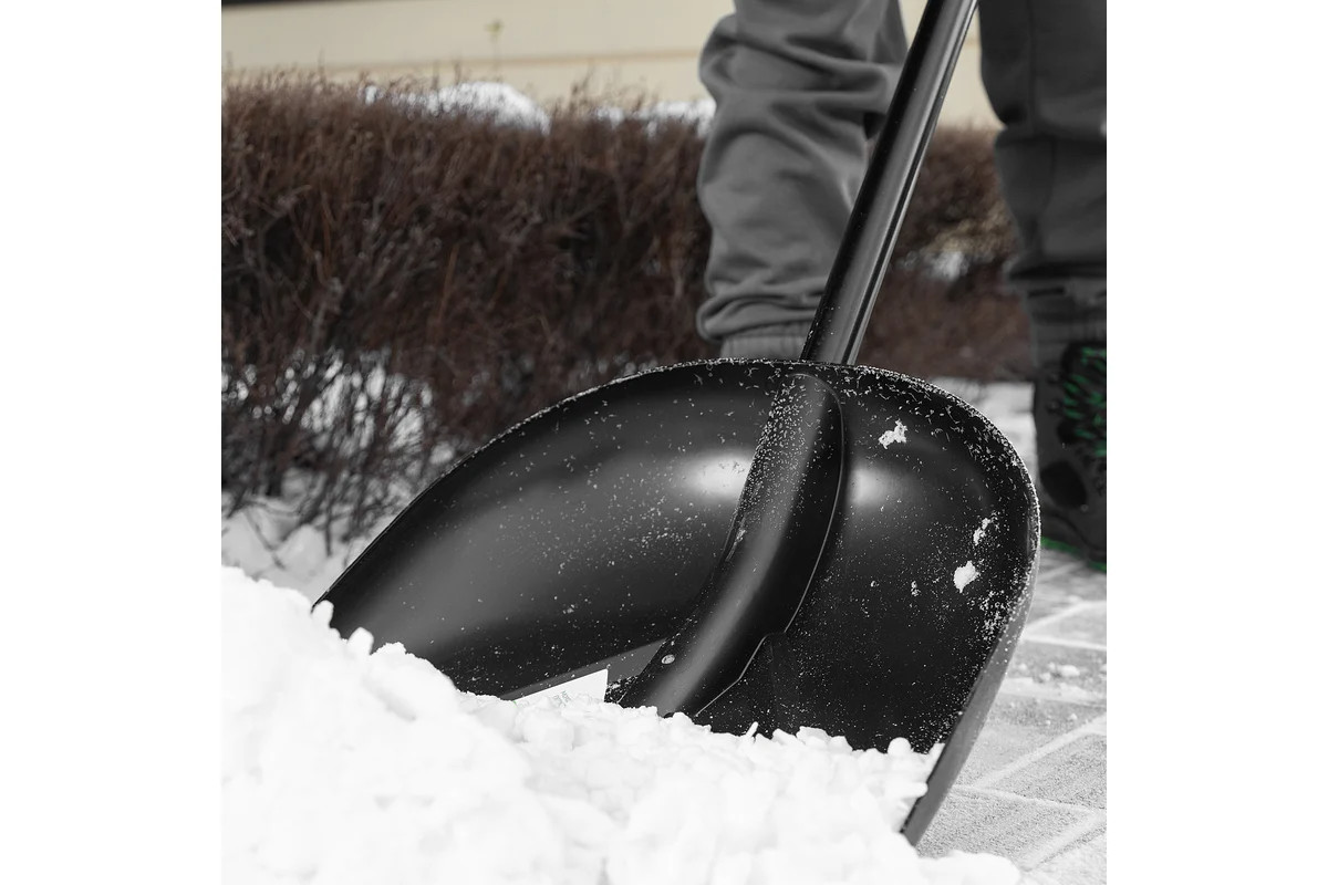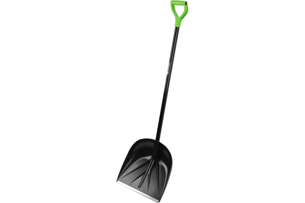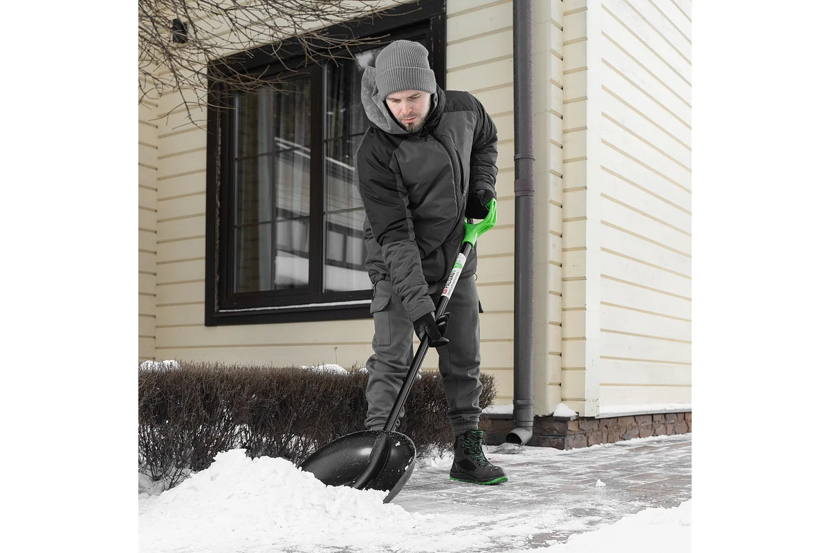 Пластиковая лопата с алюминиевым черенком, позволяет облегчить уборку снега. С ее помощью можно очистить дорожки в загородном доме, выезд из гаража и т.д. С облегченной лопатой весом 1,1 кг легко справится женщина или подросток. Длина инструмента составляет 1390 мм, что позволяет снизить нагрузку на спину. Преимущества: - Морозостойкость — ковш выполнен из ударопрочного полипропилена, который выдерживает низкие температуры. - Эффективная работа — углубленный ковш с высокими бортиками вмещает большое количество снега. - Очищение от слежавшегося снега и наста — накладка из алюминиевого сплава защищает кромку ковша от повреждений и истирания. - Надежность — черенок закреплен заклепками, дополнительные ребра жесткости повышают устойчивость ковша к нагрузкам. - Комфортная работа — эргономичная дополнительная рукоятка обеспечивает надежный хват и оптимальное распределение нагрузки.