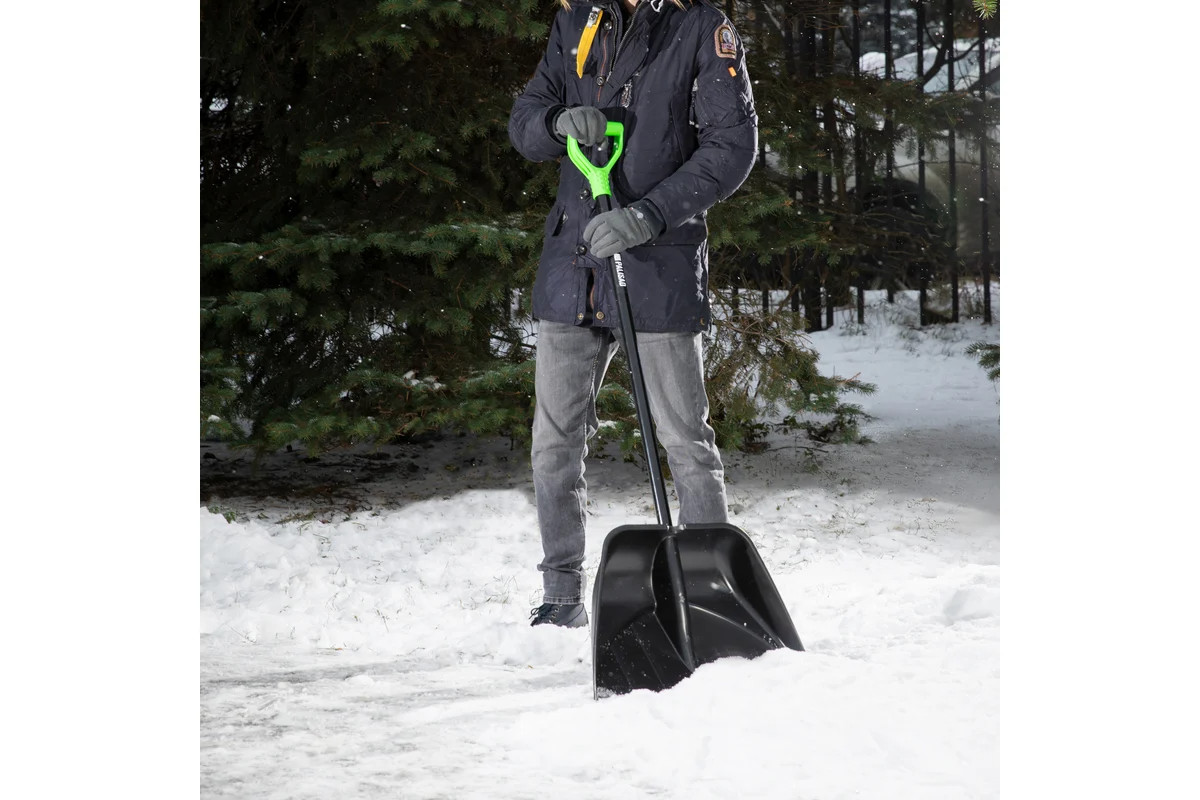 Пластиковая лопата для уборки снега с алюминиевым черенком, используется для расчистки территории в зимний период. Благодаря алюминиевой накладке на кромке ковша инструмент эффективно справляется даже с плотным слежавшимся снегом и настом. Лопата весит всего 1,24 кг, поэтому с ней легко работать людям с разным уровнем подготовки. Инструмент пригодится при уборке придомовой территории, пространства перед гаражом или садового участка. Преимущества: - Ковш из прочного полипропилена не разрушается под действием низких температур, поэтому прослужит долго. - Алюминиевый черенок с покрытием из порошковой эмали устойчив к коррозии и механическим повреждениям. - Глубокий ковш с ребрами жесткости позволяет переносить большое количество снега без риска поломки. - Черенок оснащен дополнительной рукояткой, благодаря чему не скользит в руке даже при длительной работе.