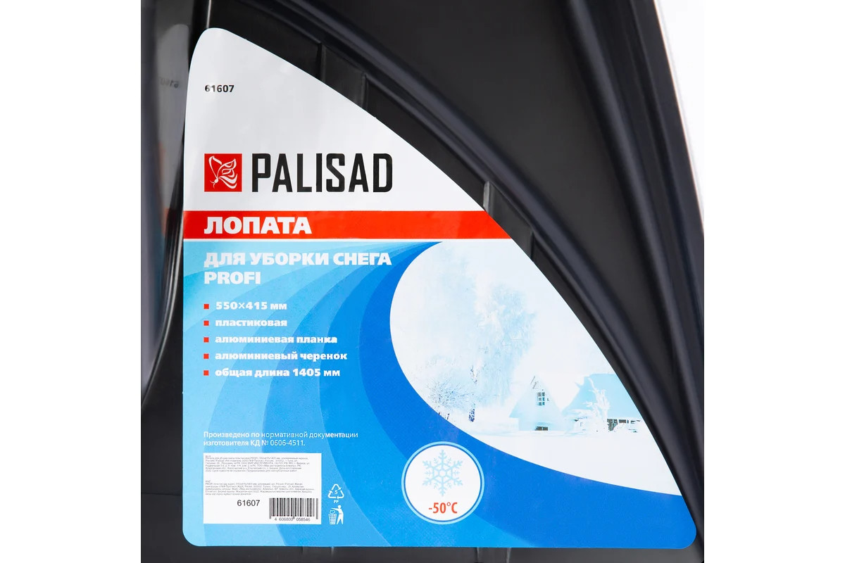 Лопата для уборки снега пластиковая 550х415х1405 мм алюминиевый черенок PALISAD Profi