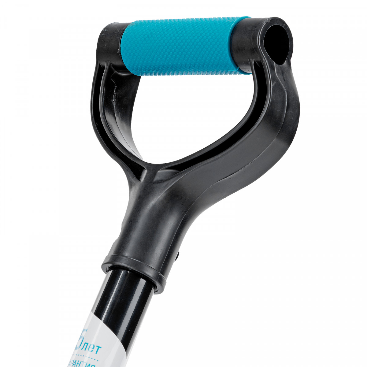 - Прочность и долговечность — ковш усилен ребрами жесткости, стальной черенок устойчив к поломке и покрыт защитным составом для предотвращения коррозии.