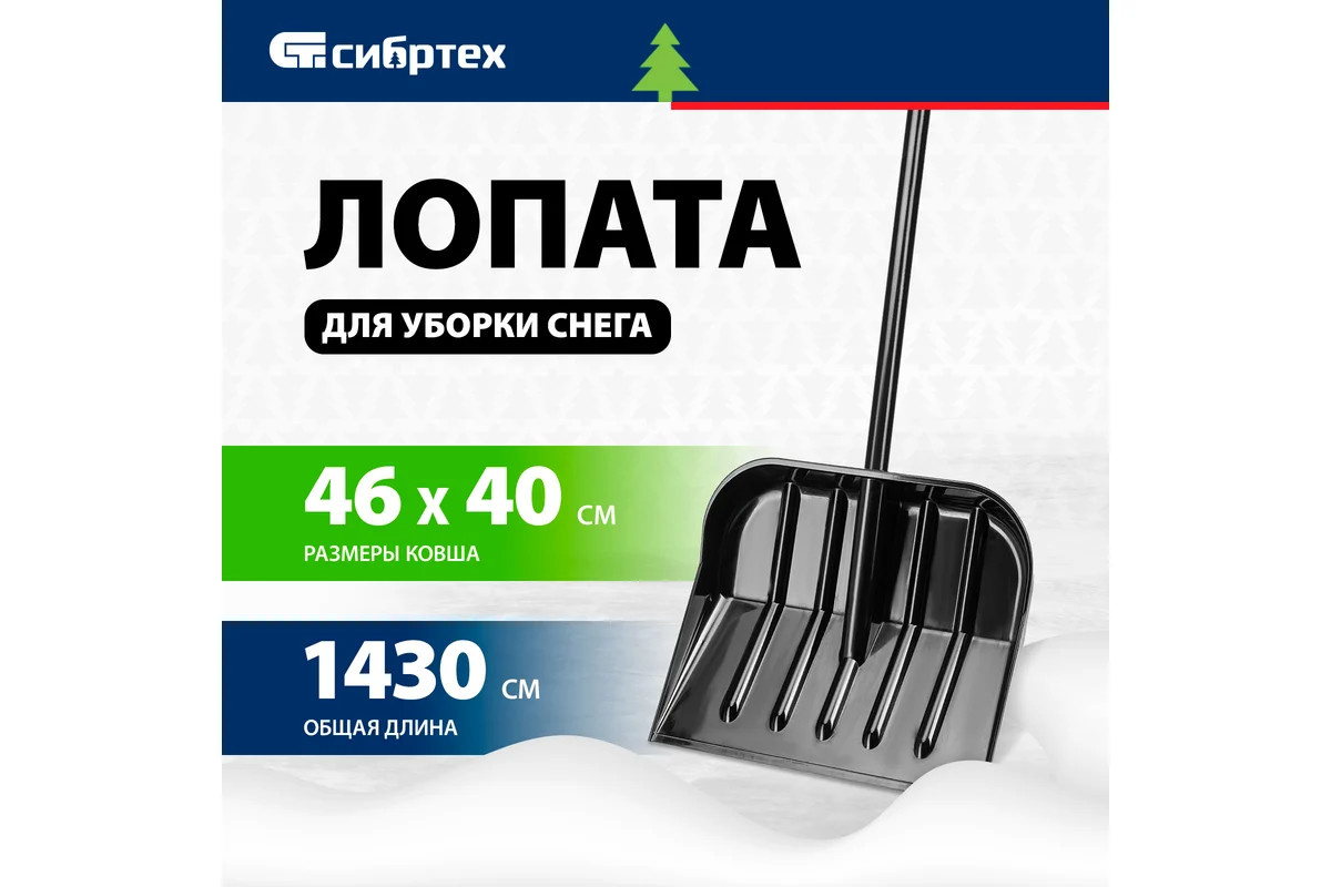 Лопата для уборки снега поликарбонат 460х400х1430 мм стальной черенок СИБРТЕХ