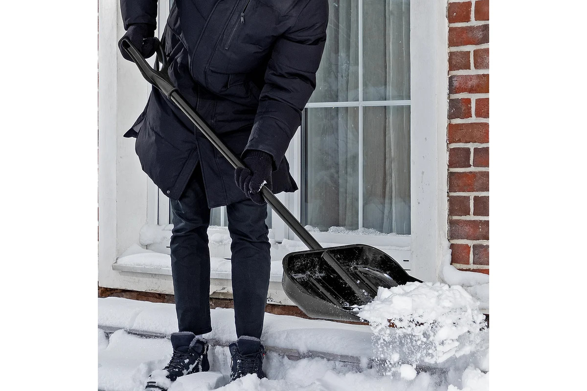 Ударопрочный поликарбонат обеспечивает долговечность и надежность лопаты при работе с снегом.