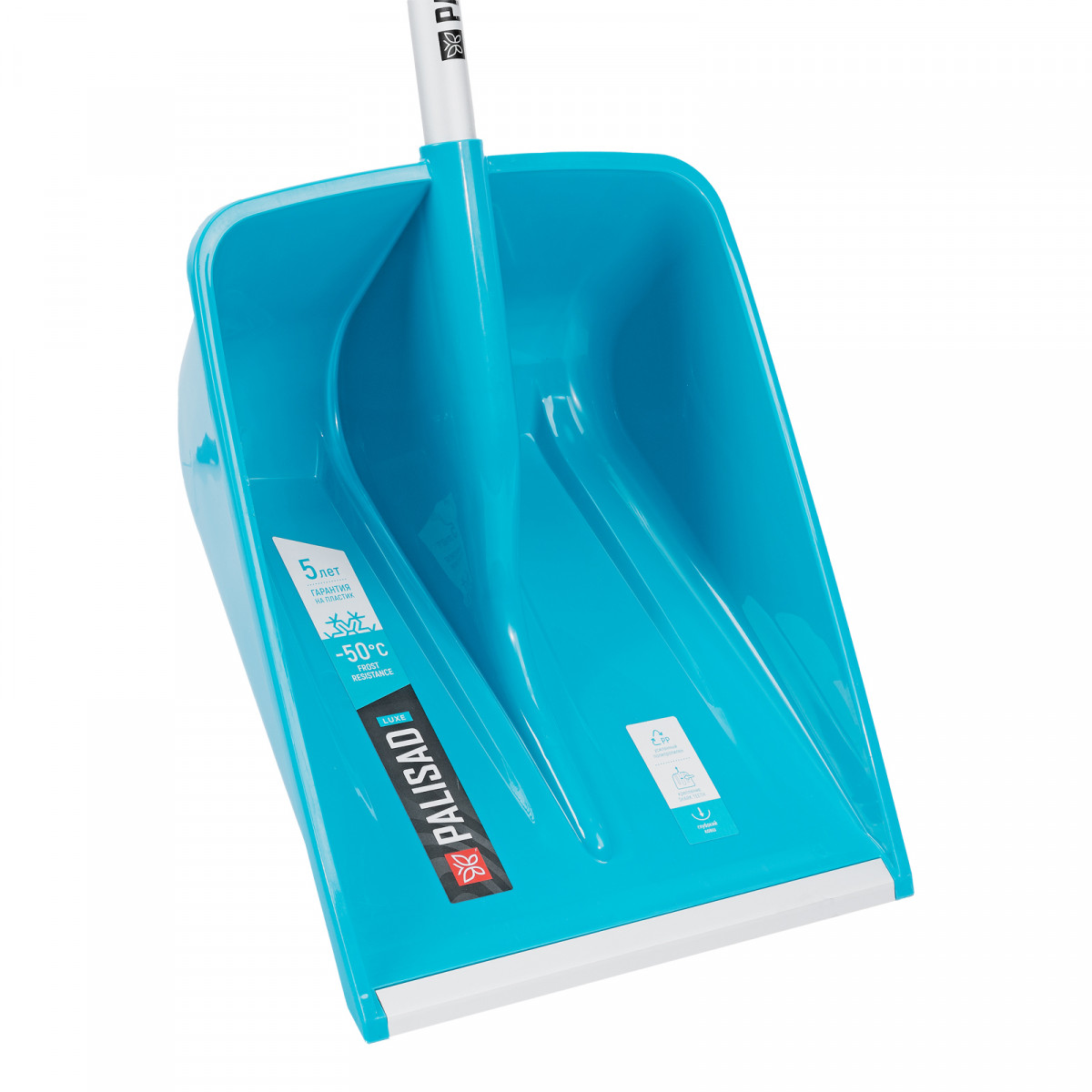 Лопата для уборки снега, полипропилен, 365х460х1500мм, алюминиевый черенок, ПВХ накладка, LUXE Palisad