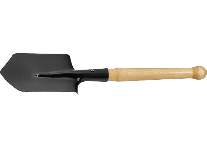 Лопата саперная штыковая, заостренный металлический ковш, деревянный лакированный черенок. Предназначена для выкопки, подкопки и перекопки грунтов любого типа. Изготовлена из холодноформованной стали 08ПС и окрашена порошковой эмалью для защиты от коррозии. Деревянный черенок защищен от рассыхания бесцветным лаком. Вес 0.7 кг