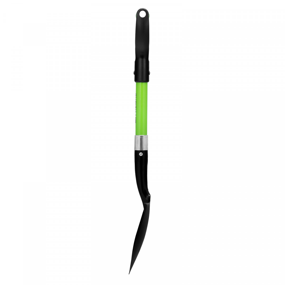 - Продуманная конструкция — фибергласовый черенок не утяжеляет лопату и не разрушается под действием ультрафиолета, а удлиненная цельновырубная тулейка предотвращает его излом.