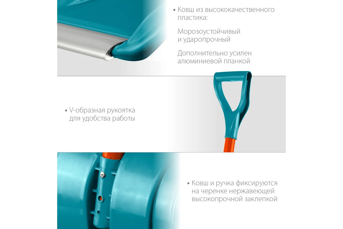 Алюминиевая планка защищает ковш лопаты от повреждений.