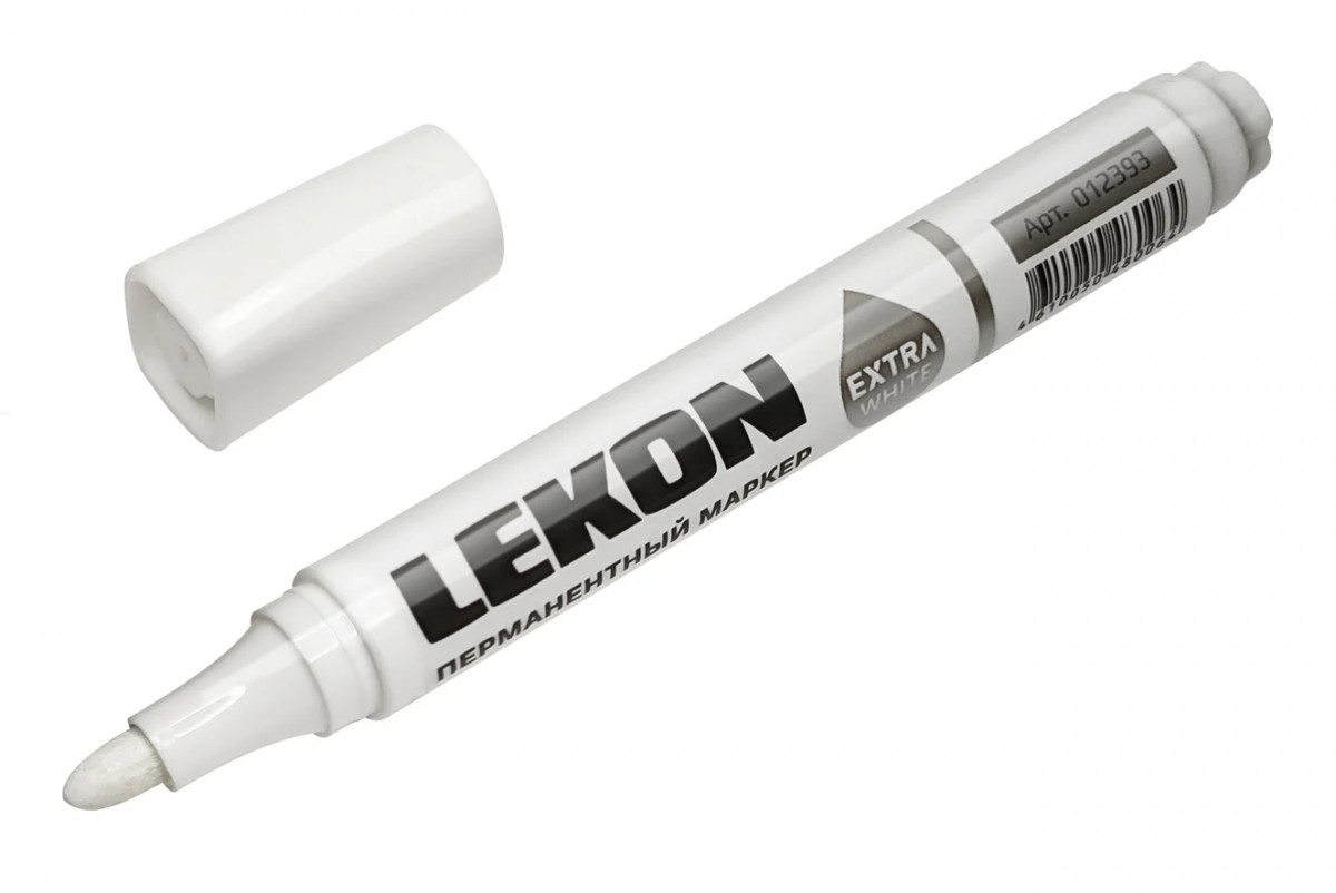 Перманентный маркер LEKON белый EXTRA WHITE 012393 гладко пишет по поверхности, перекрывая ее цвет без потеков и впитывания. Нетоксичен, не содержит ксилен. Долговечный пишущий элемент из акрила. Особый пигментный состав чернил практически невозможно стереть уже через пару минут после нанесения. Возможна дозаправка маркера. Линия 2-3мм. Яркий цвет, быстро сохнет.