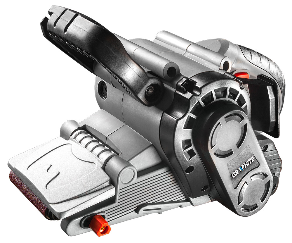 Ленточная шлифовальная машина GRAPHITE предназначена для шлифования поверхностей заготовок из древесины, металла и других материалов.