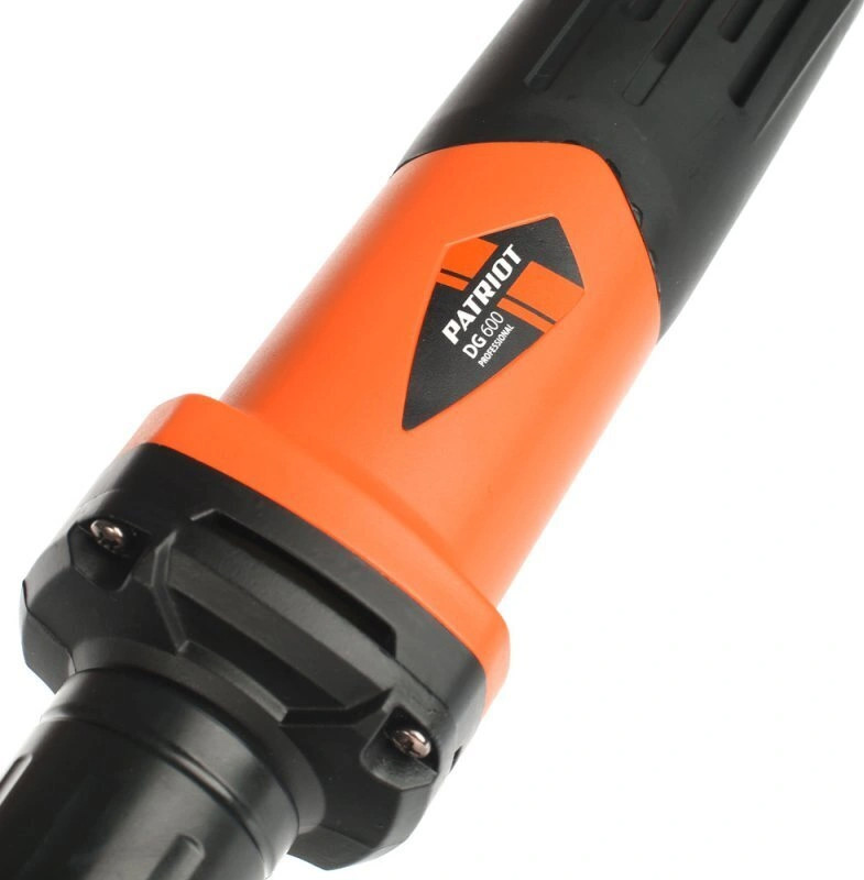 Прямошлифовальная машина PATRIOT DG 600  предназначена для полировки и шлифовки сложных и труднодоступных поверхностей, удаления заусенцев и ржавчины. Для быстрой смены оснастки, а также для ее надежной фиксации данная модель оснащена цанговым зажимом 6 мм. Удобство при продолжительной работе обусловлено наличием фиксации кнопки включения. Прорезиненная рукоятка ExtraGrip отвечает за надежный хват и полный контроль над инструментом в процессе работы. Конструкция позволяет быстро заменить угольные щетки без обращения в сервисный центр.