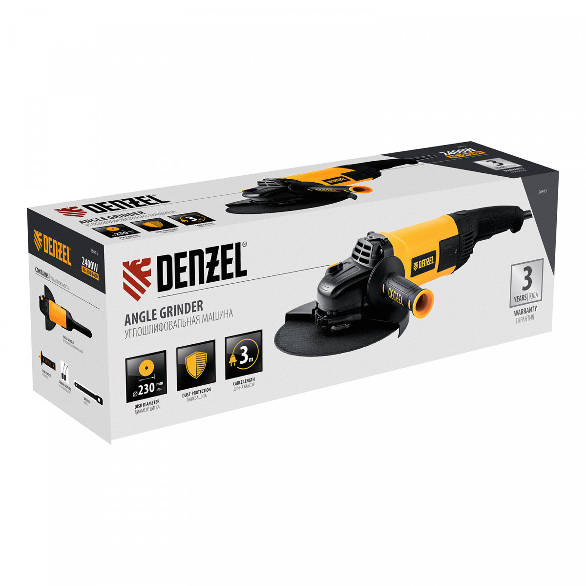 Машина шлифовальная угловая AG230-2400, 2400 Вт, 230 мм, 6000 об/мин Denzel