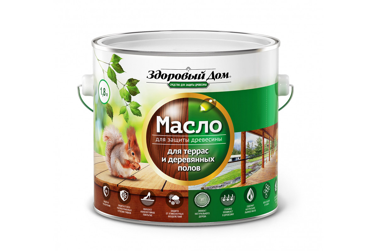 Масло для террас и деревянных полов Здоровый Дом Бесцветное 1,8л