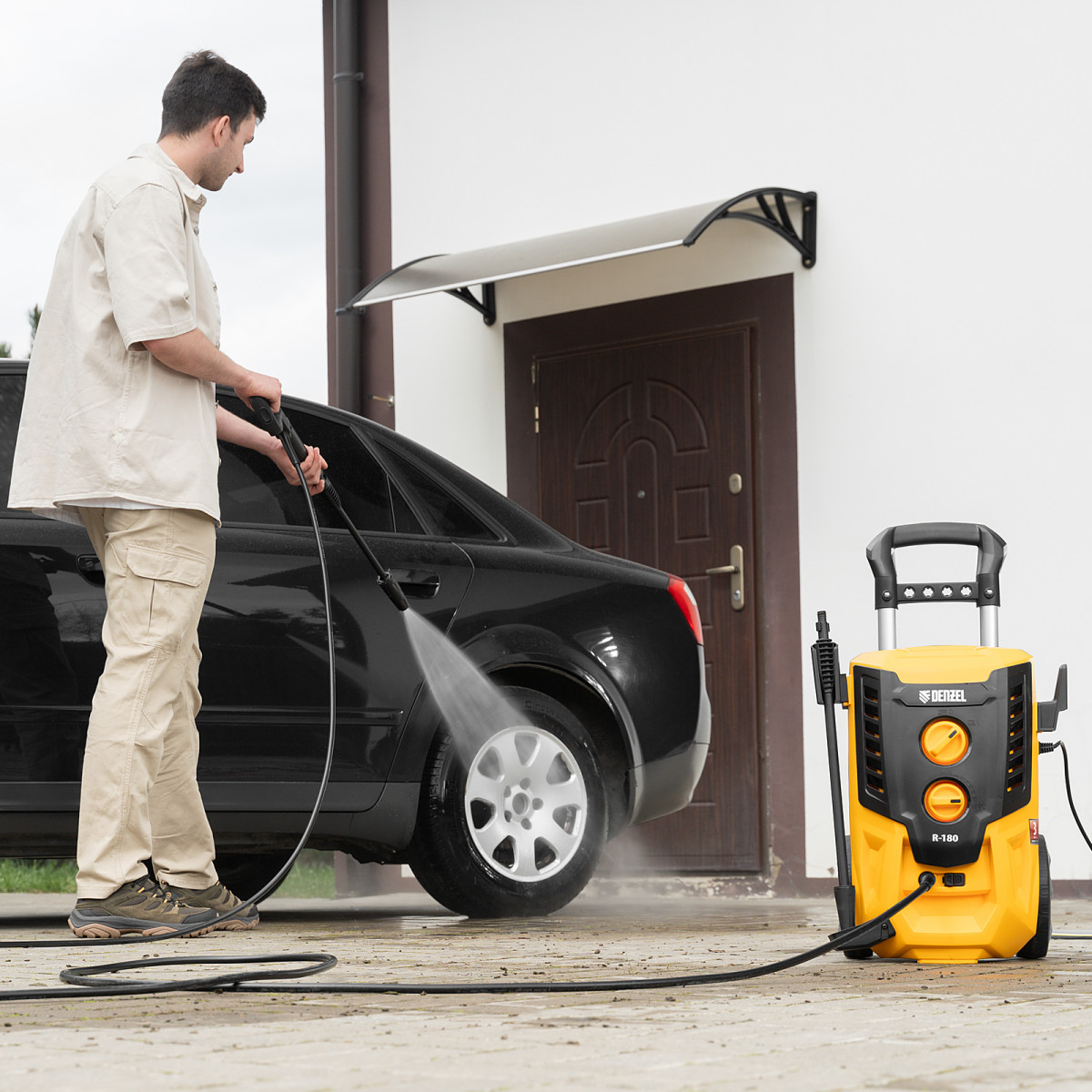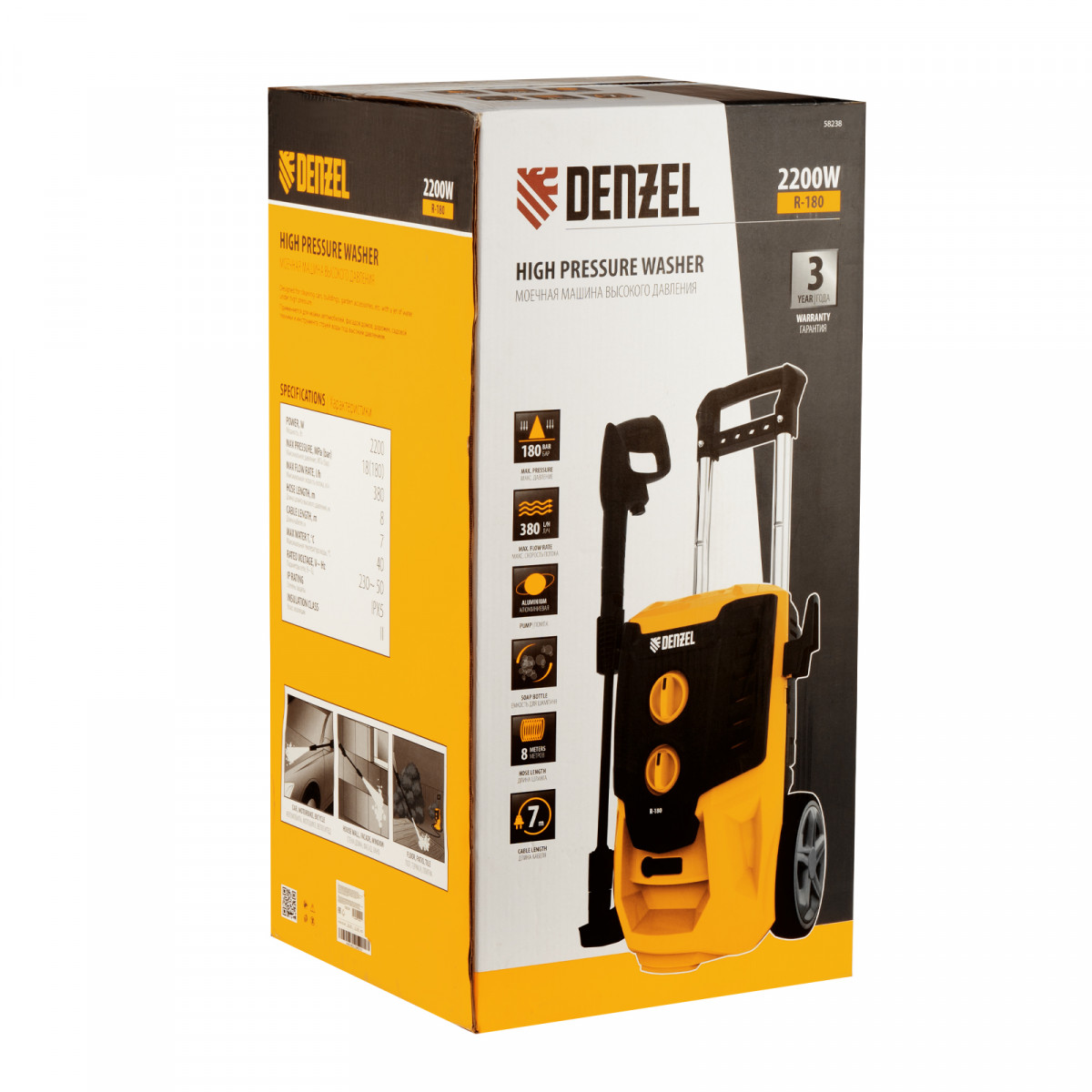 Моечная машина высокого давления R-180, 2200 Вт, 180 бар, 380 л/ч, колесная Denzel