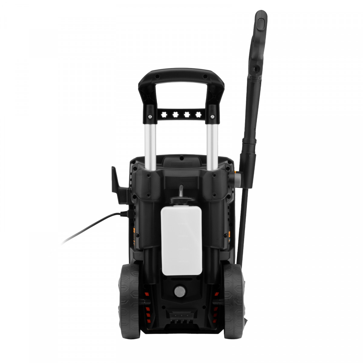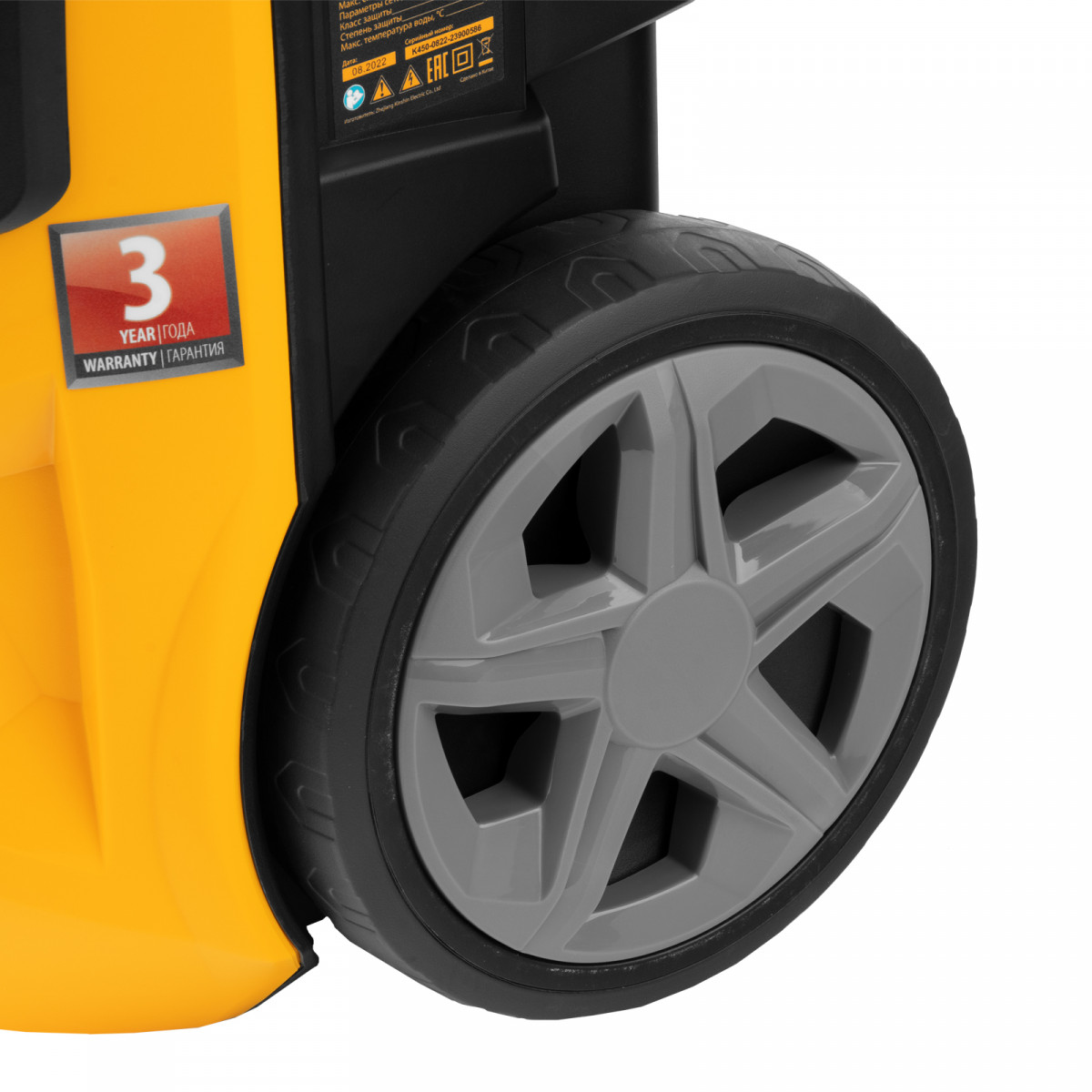 Колесная моечная машина высокого давления Denzel R-180 58238 мощностью 2200 Вт и производительностью 380 л/ч подает струю воды под давлением 180 бар и служит для очищения поверхностей. Позволяет быстро привести в порядок садовые дорожки, удалить пыль и грязь с фасада здания, автомобиля, велосипеда или мотоцикла, отмыть садовый инвентарь. Моечная машина подключается к водопроводу, а при его отсутствии может забирать воду из любого резервуара, работая в режиме самовсасывания. Устройство пригодится для поддержания порядка на загородном участке.