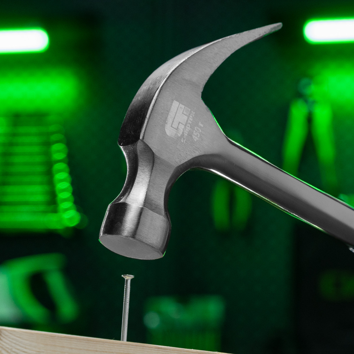 Молоток-гвоздодер Сибртех обладает высокой износостойкостью благодаря головке из стали 45.