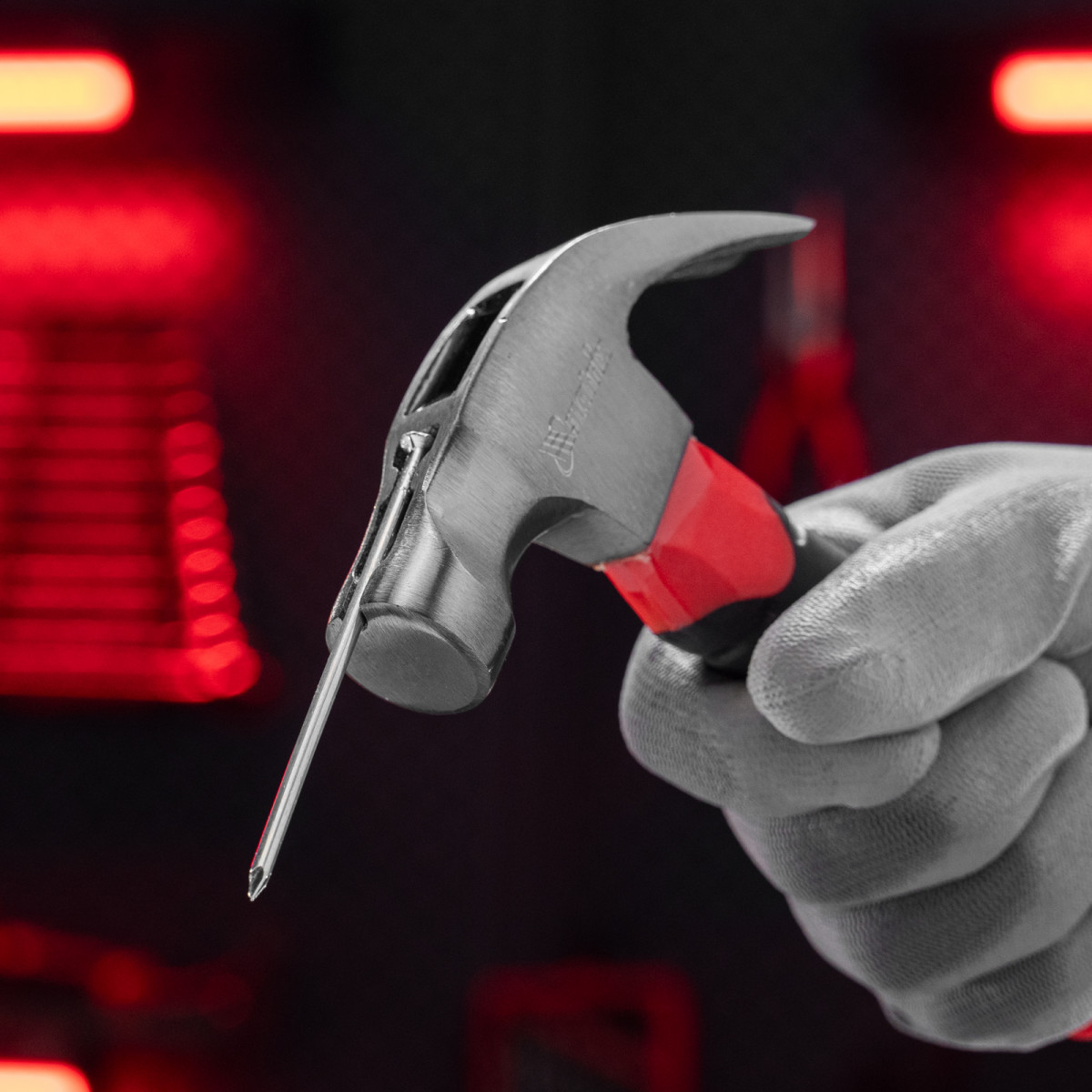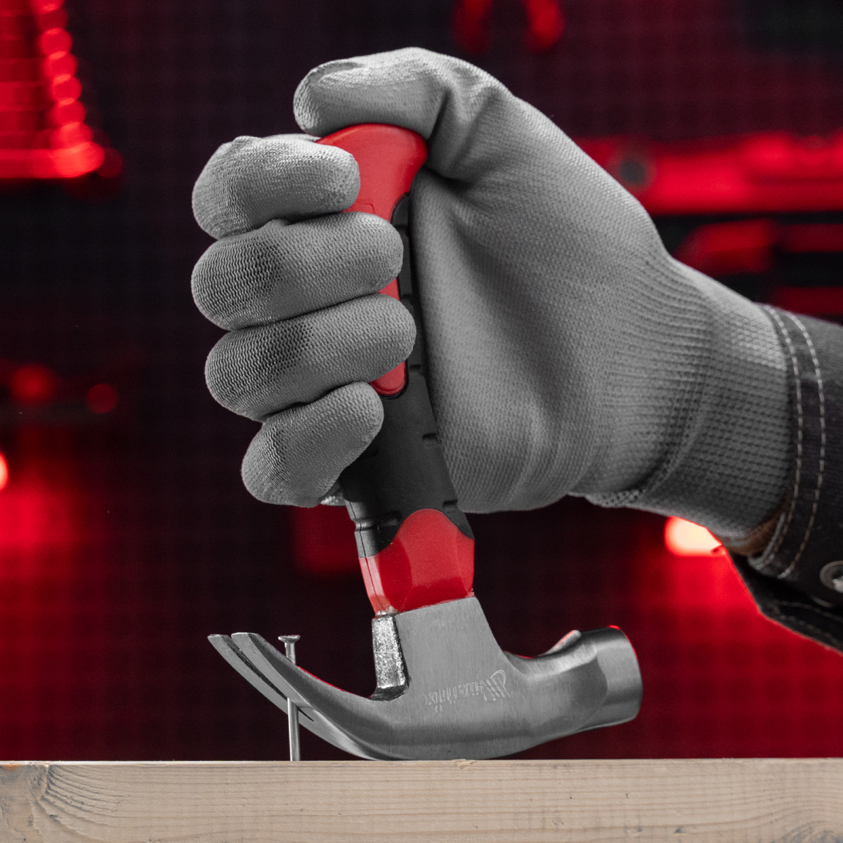 Молоток-гвоздодер мини Matrix 10443 с головкой весом 250 г, бойком с магнитом и фибергласовой двухкомпонентной рукояткой, предназначен для столярных, плотницких и отделочных работ. Благодаря компактным размерам он очень удобен в быту и в поездках. Круглый боек служит для забивания гвоздей, а плоский носок с прорезью — для их выпрямления. Магнитный фиксатор позволяет установить гвоздь в труднодоступном месте, не придерживая его рукой.