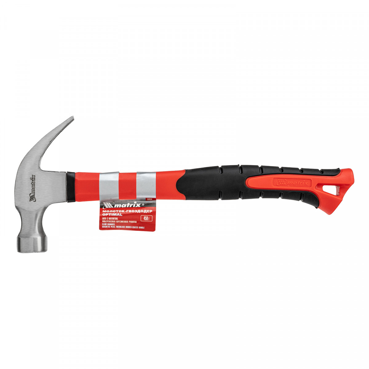 Молоток-гвоздодер optimal, 450 г, боек c магнитом, фибергласовая обрезиненная рукоятка Matrix