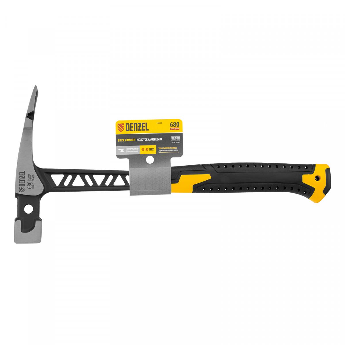 Молоток каменщика 680 г, цельнокованый, двухкомпонентная обрезиненная рукоятка Denzel