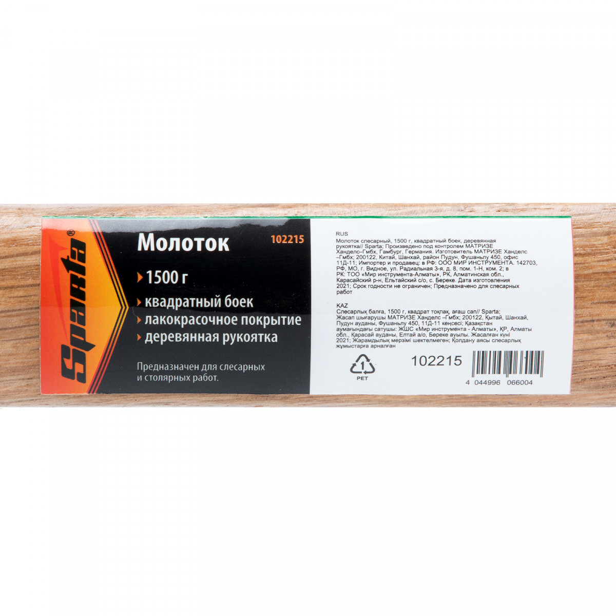 Молоток слесарный, 1500 г, квадратный боек, деревянная рукоятка Sparta