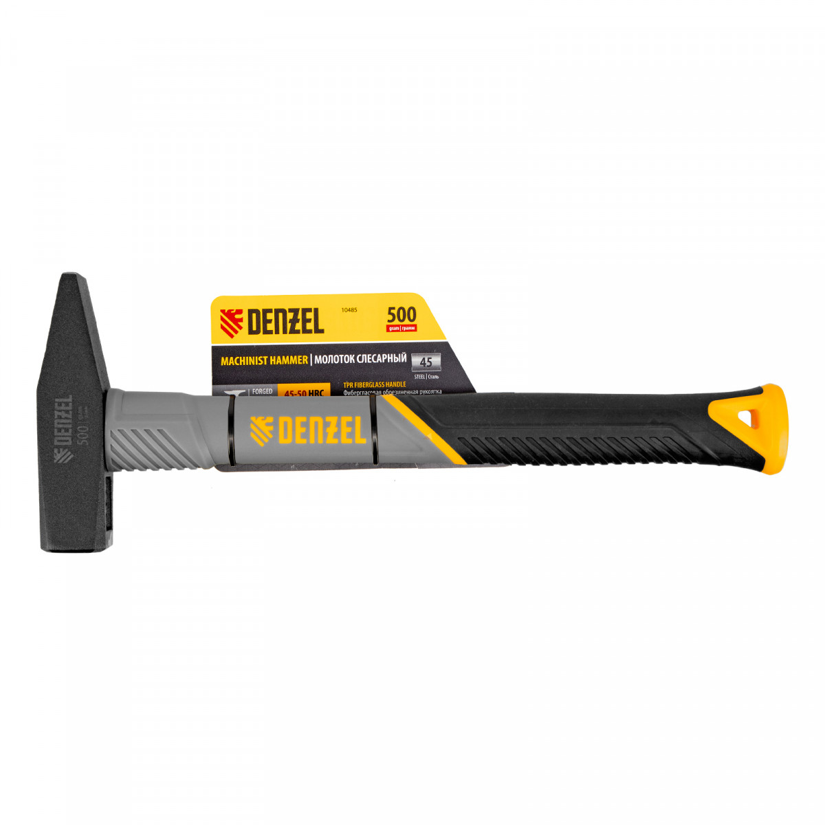 Молоток слесарный, 500 г, кованый, фибергласовая рукоятка c TPR покрытием Denzel