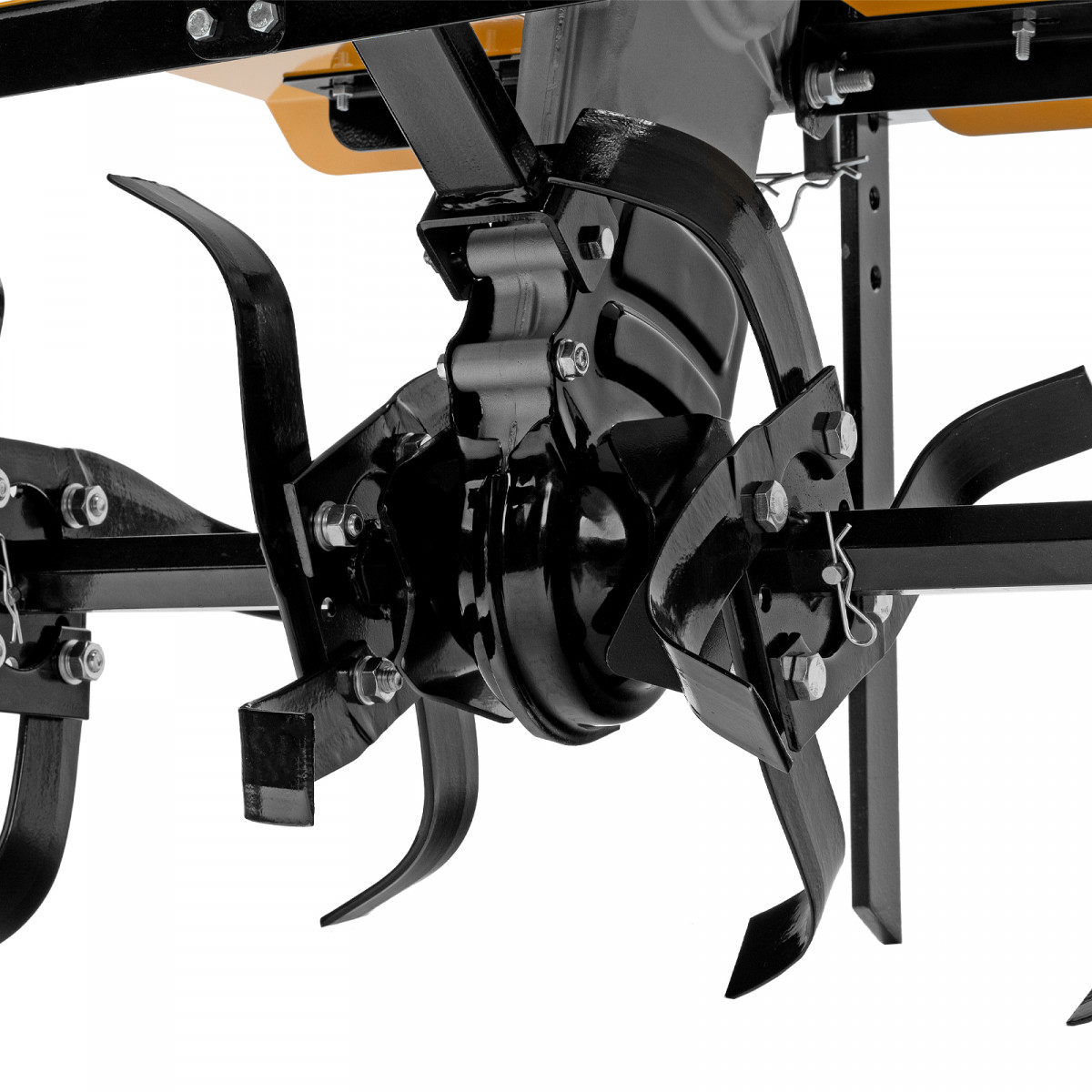 - Настраиваемая глубина вспахивания — отрегулировав сошник по высоте, можно задать степень погружения фрез до 350 мм.