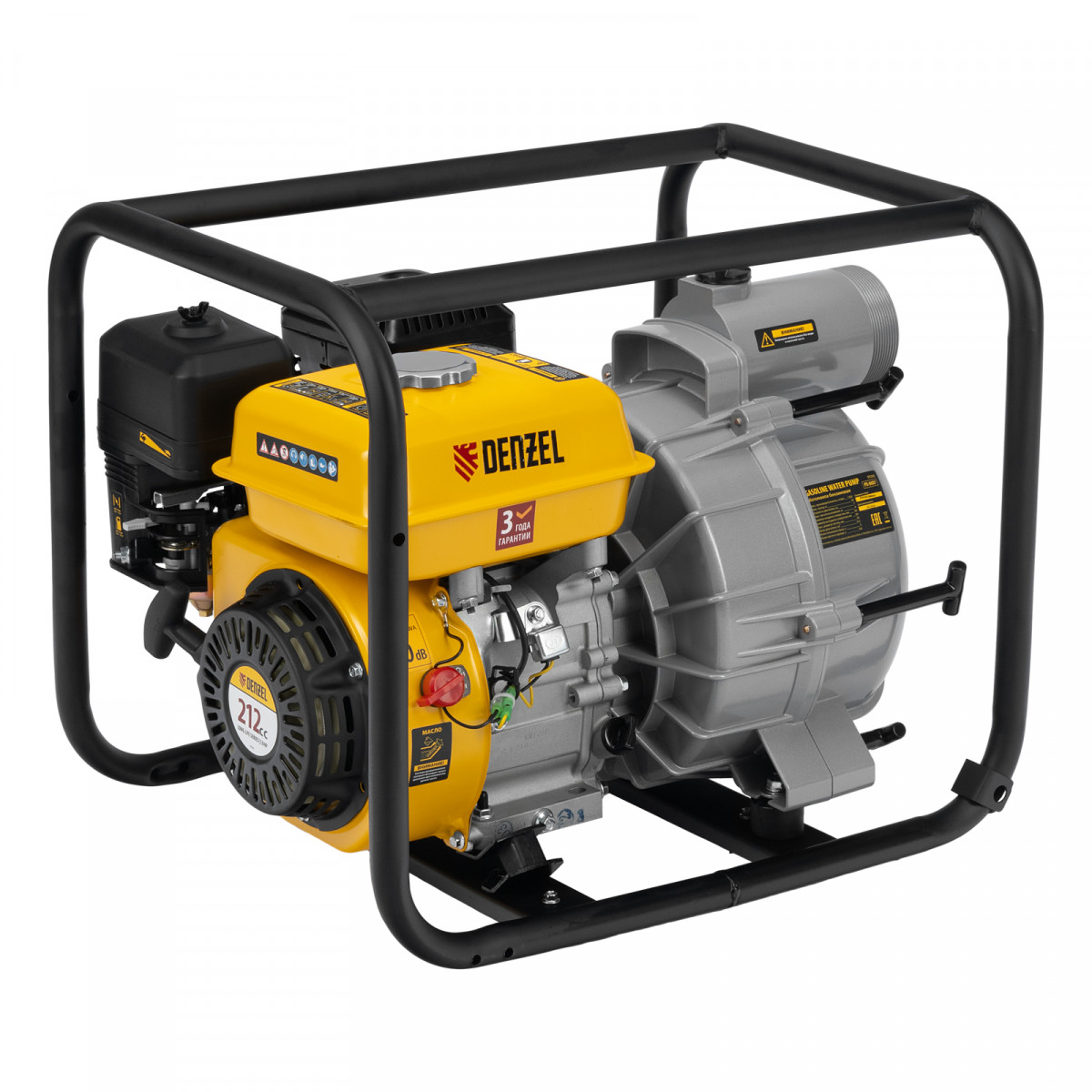 Мотопомпа бензиновая для грязной воды PX-80D7, 7 л.с., 3", 1300 л/мин, глуб 8 м,напор 30 м Denzel