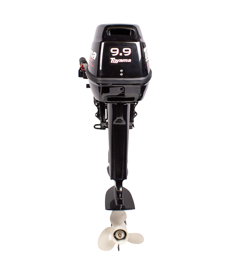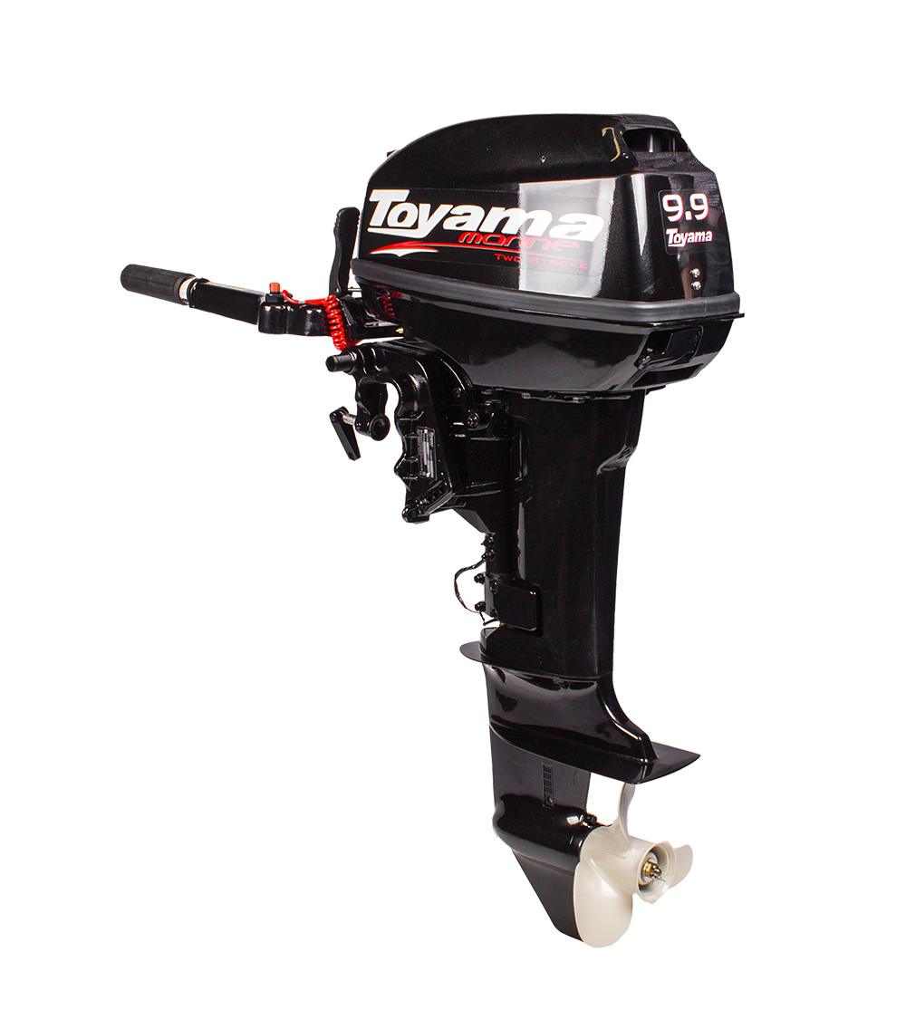 Подвесной 2-х тактный бензиновый лодочный мотор Toyama T9.9 BMS имеет 9.9 лошадиных сил и систему водяного охлаждения двигателя, что позволяет сохранять высокую производительность на протяжении всего времени эксплуатации. Мотор Toyama T9.9 BMS имеет встроенный топливный бак, ручной стартер, а так же рулевое управление с возможностью поворота на 360º, которое не требует переключения передач. Рычаг дросселя, воздушная заслонка, стартер и выключатель двигателя размещены достаточно удобно, что создает уверенный запуск. Легкость управления и маневренность модели обеспечивает длинная рукоятка рулевого управления, а также возможности регулировки усилия вращения и угла дифферента мотора. Мотор идеально подходит для надувных лодок, рыболовных лодок, парусных шлюпок и маленьких яхт.