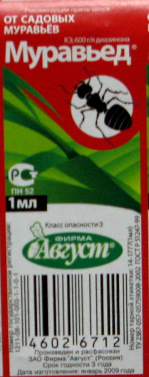 Применяется в малых нормах расхода: 1 мл достаточно для обработки около 5-10 муравейников.