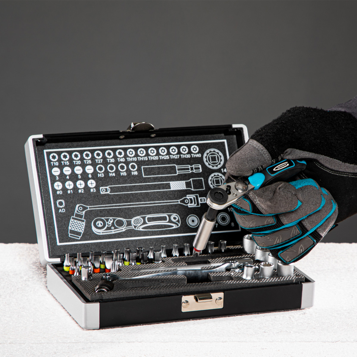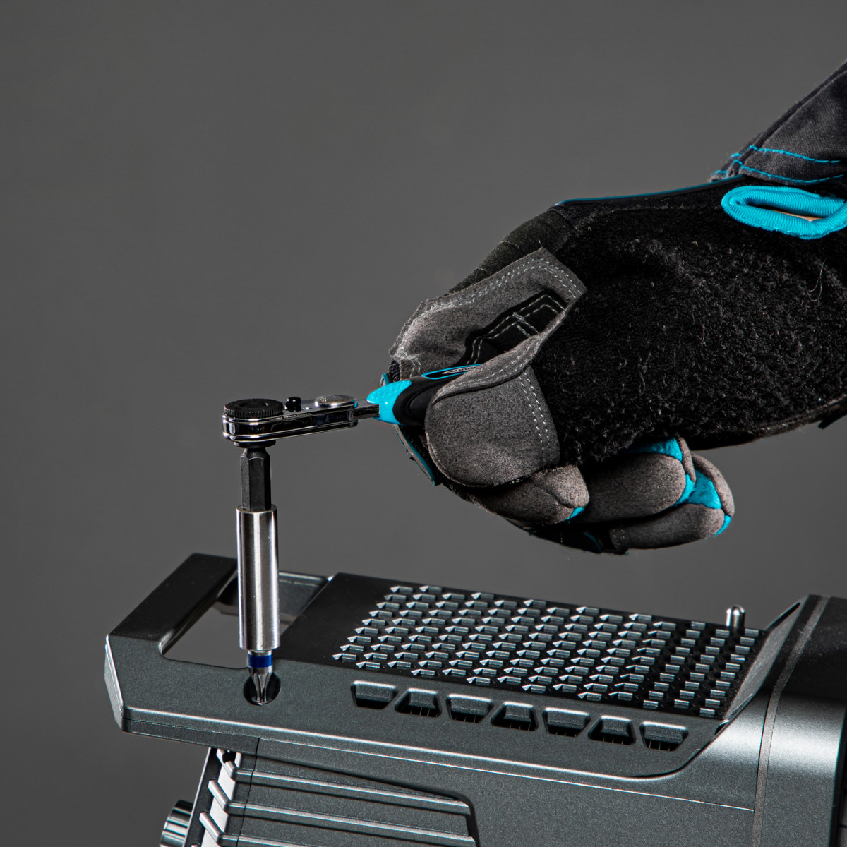 - Комфортная работа — трещотка с 52 зубьями обеспечивает плавное вращение крепежа, а прорезиненная рукоятка не выскальзывает из ладони.