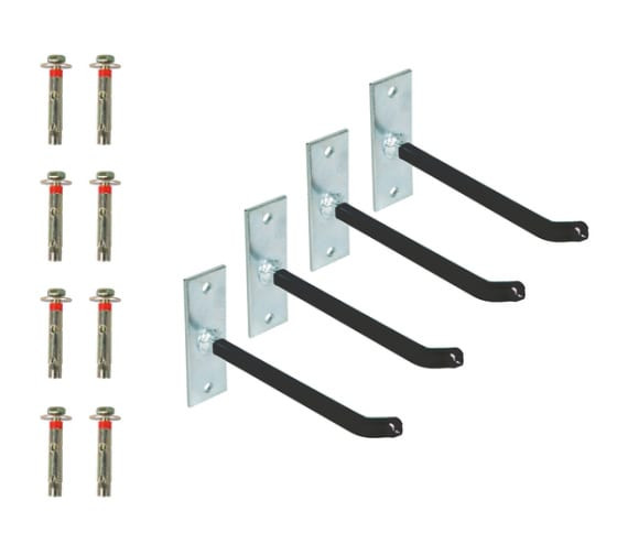 Набор для крепления автоколес, 4 крючка GAH ALBERTS 801960 предназначен для подвешивания колёсных дисков. Изготовлен из необработанной стали с гальванической оцинковкой и оболочкой из ПВХ-рукава.Размер a: 200 мм.
