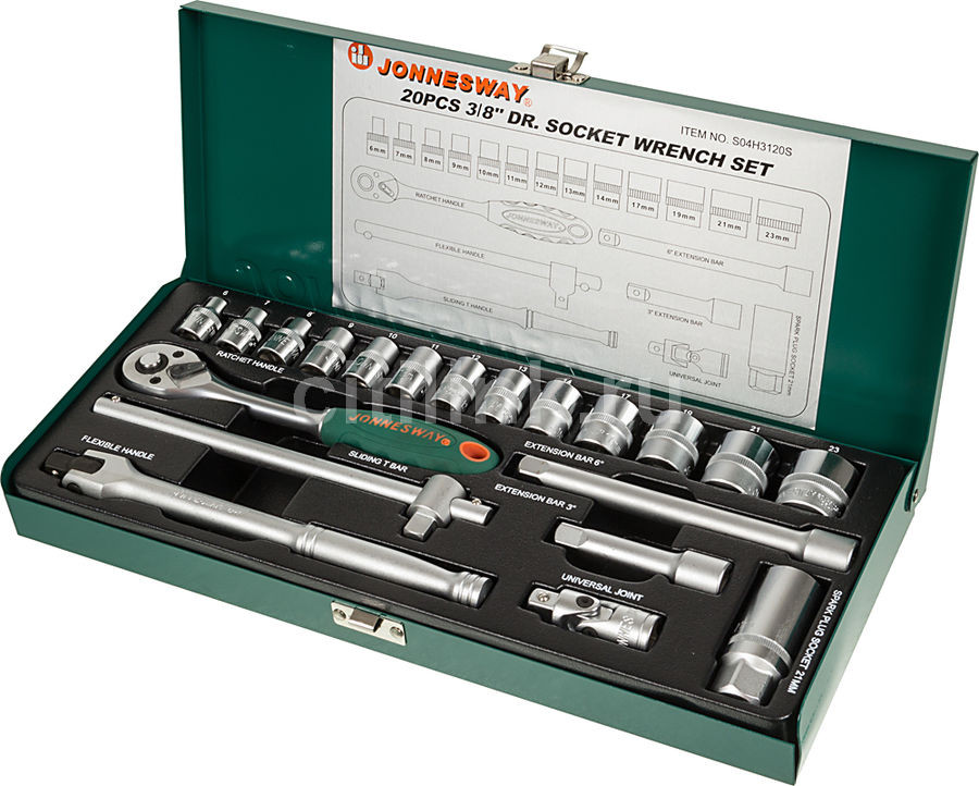 Набор головок торцевых JONNESWAY 3/8"DR 6-23 мм 20 предметов
