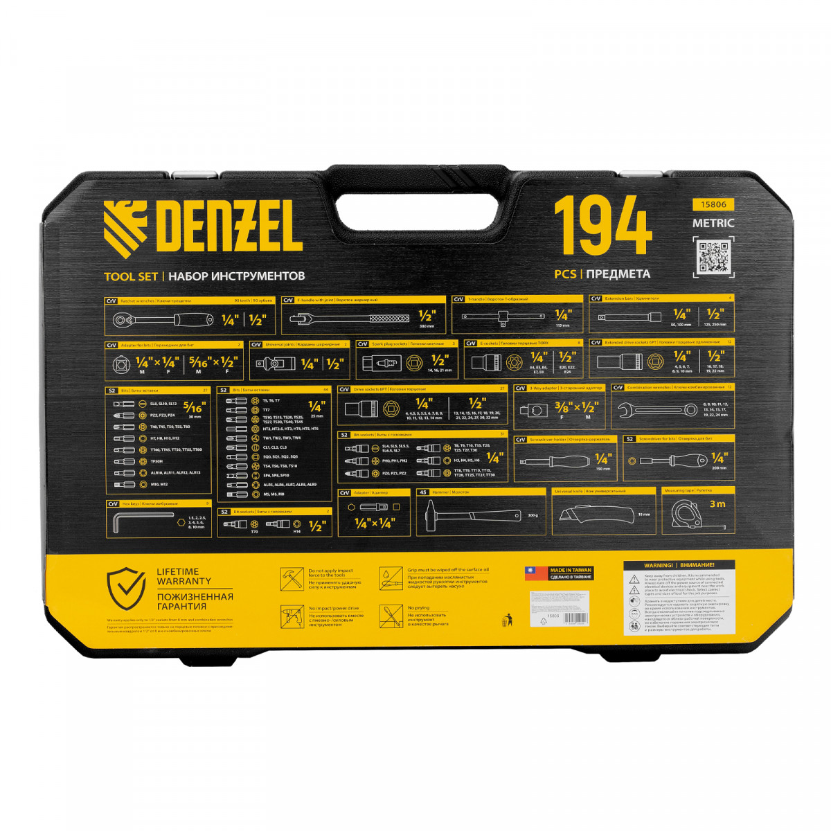 Набор инструментов, 1/2", 1/4", CrV, S2, пластиковый кейс, 194 предмета Denzel