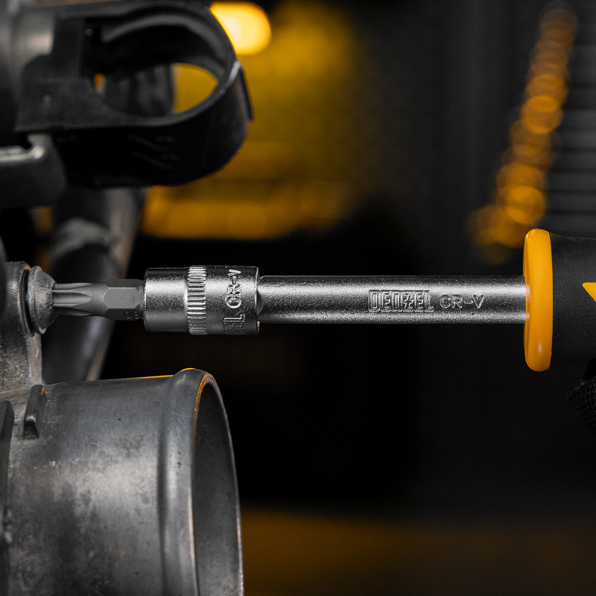 - Устойчивость к высоким нагрузкам — инструменты изготовлены из высокопрочной закаленной стали CrV, биты выполнены из японской стали S2.