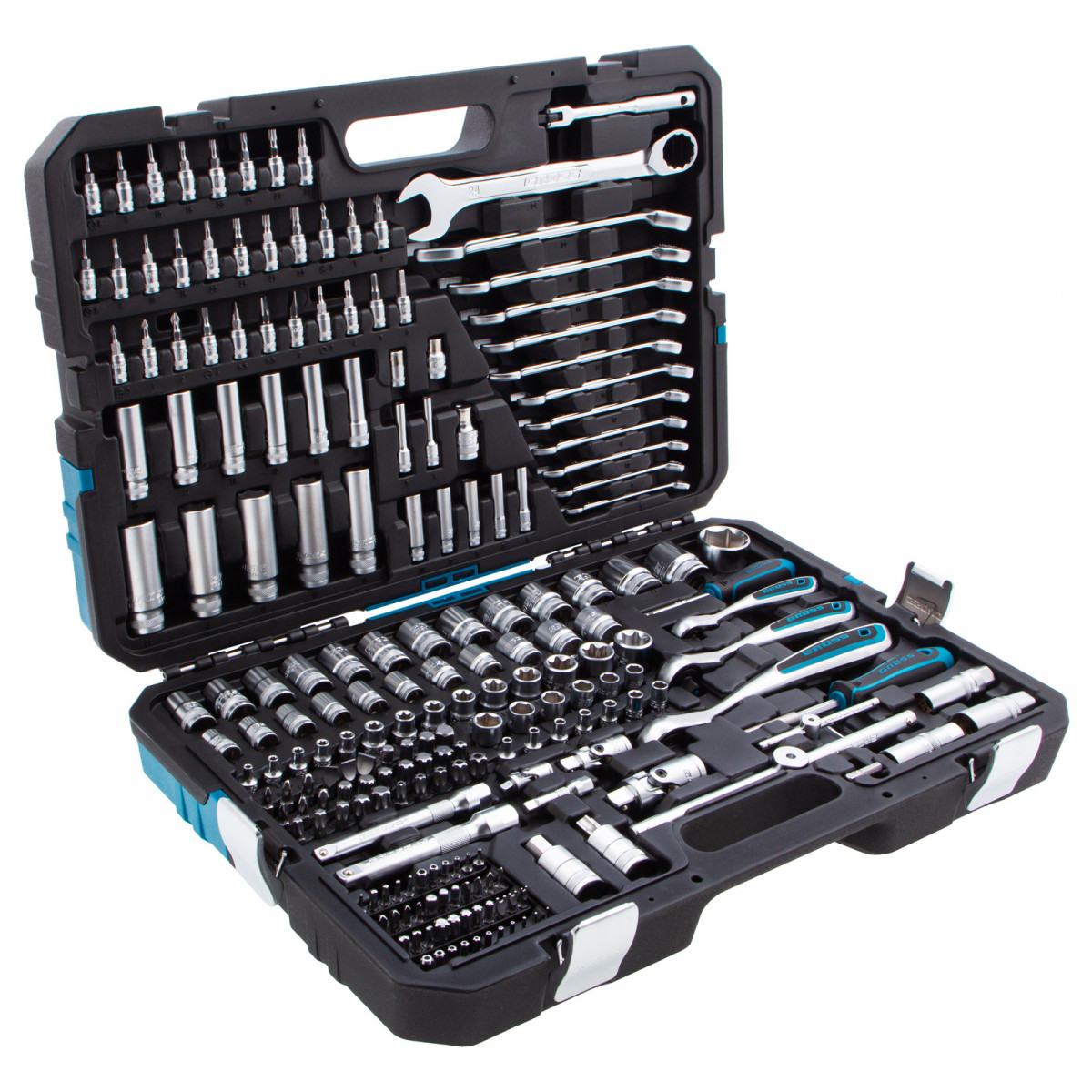 - Продуманная система хранения — набор поставляется в противоударном кейсе с металлическими застежками, каждый инструмент зафиксирован в ложементе.