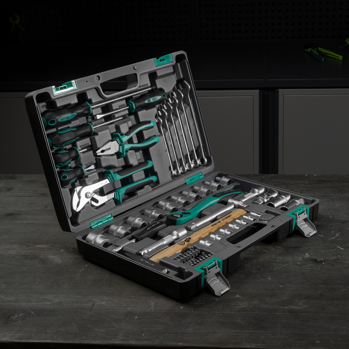 Набор инструментов Stels 14113 в ударопрочным пластиковом кейсе состоит из 58 предметов с присоединительными квадратами 1/2″, из стали CrV и S2, и предназначен для выполнения слесарно-монтажных работ. Включает инструменты для монтажа и демонтажа резьбовых соединений, захвата и удержания деталей, а также выполнения ударных работ. Удлинители и вороток облегчают работу в труднодоступных местах. Набор предназначен для профессионального использования в автомастерской, будет полезен и для решения бытовых задач.